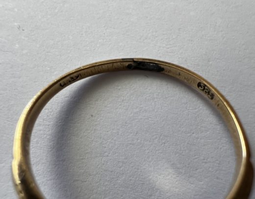 Ringen har brugsspor samt spor (streg/hak) efter mulig rep./Justering på bagsiden – se billeder.