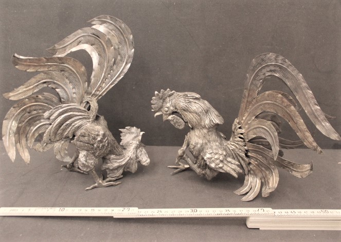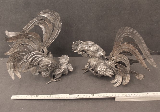 2 stk. store kamphaner i forsølvet metal – Aukt. nr. V030