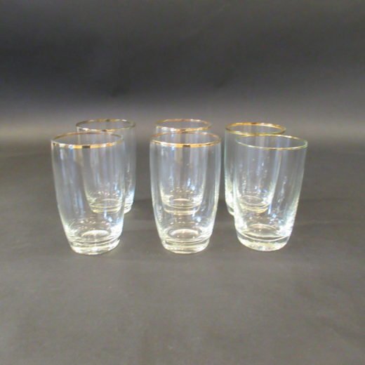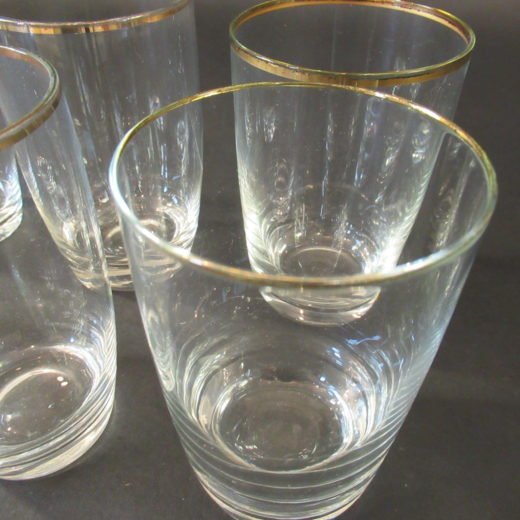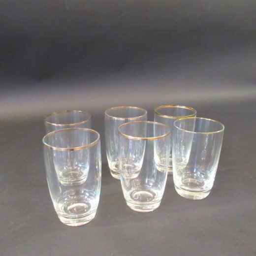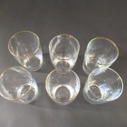 Flere af glassene fremstår med nogen slidtage på guldkanterne.