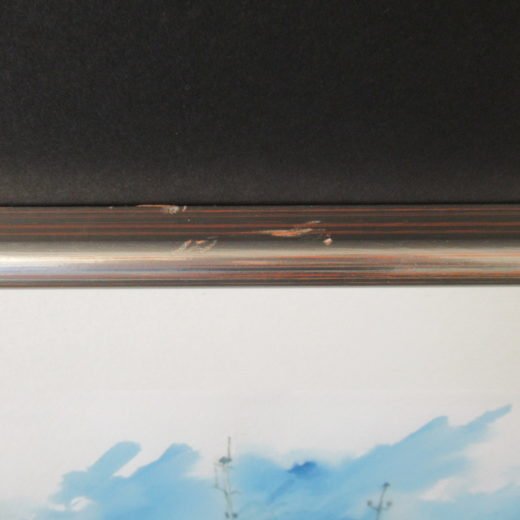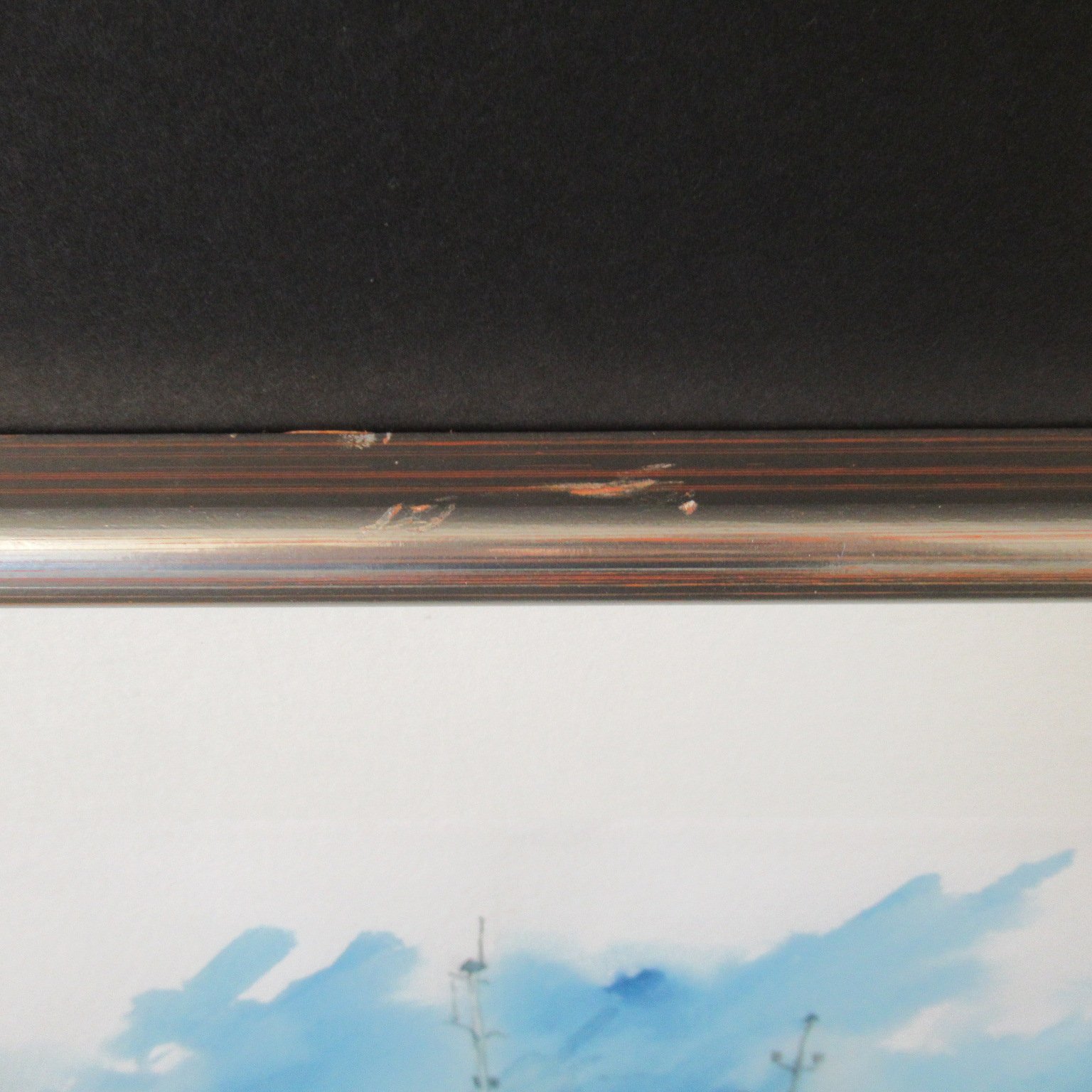Rammen fremstår med ridser og mærker, selve akvarellen og passepartou rammen fejler ingenting.