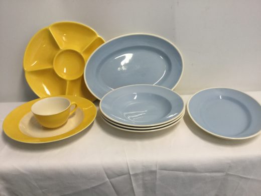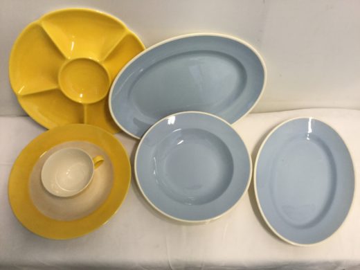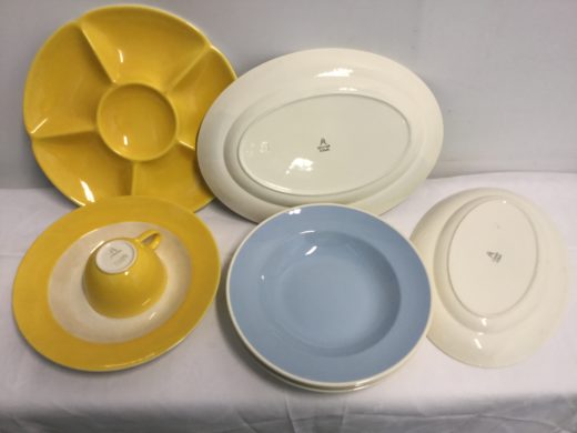Susanne: 1 stk. cabaretfad 27 cm, 1 stk. dyb tallerken 23.5 cm tegn af brugsspor, 1 kop 10 cm