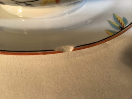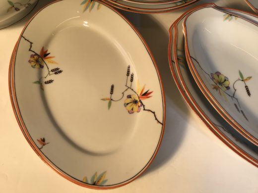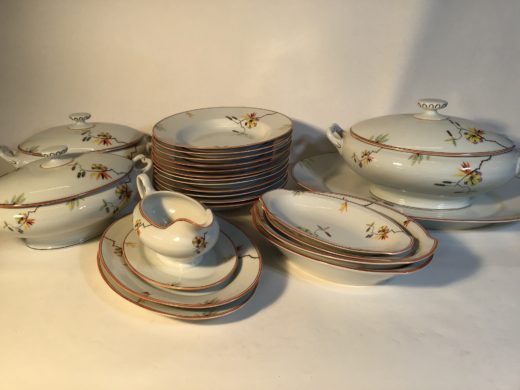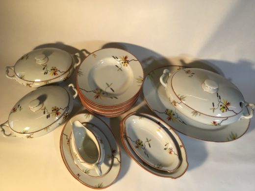 23 dele, skår i sovse skål, ingen flade tallerkener.