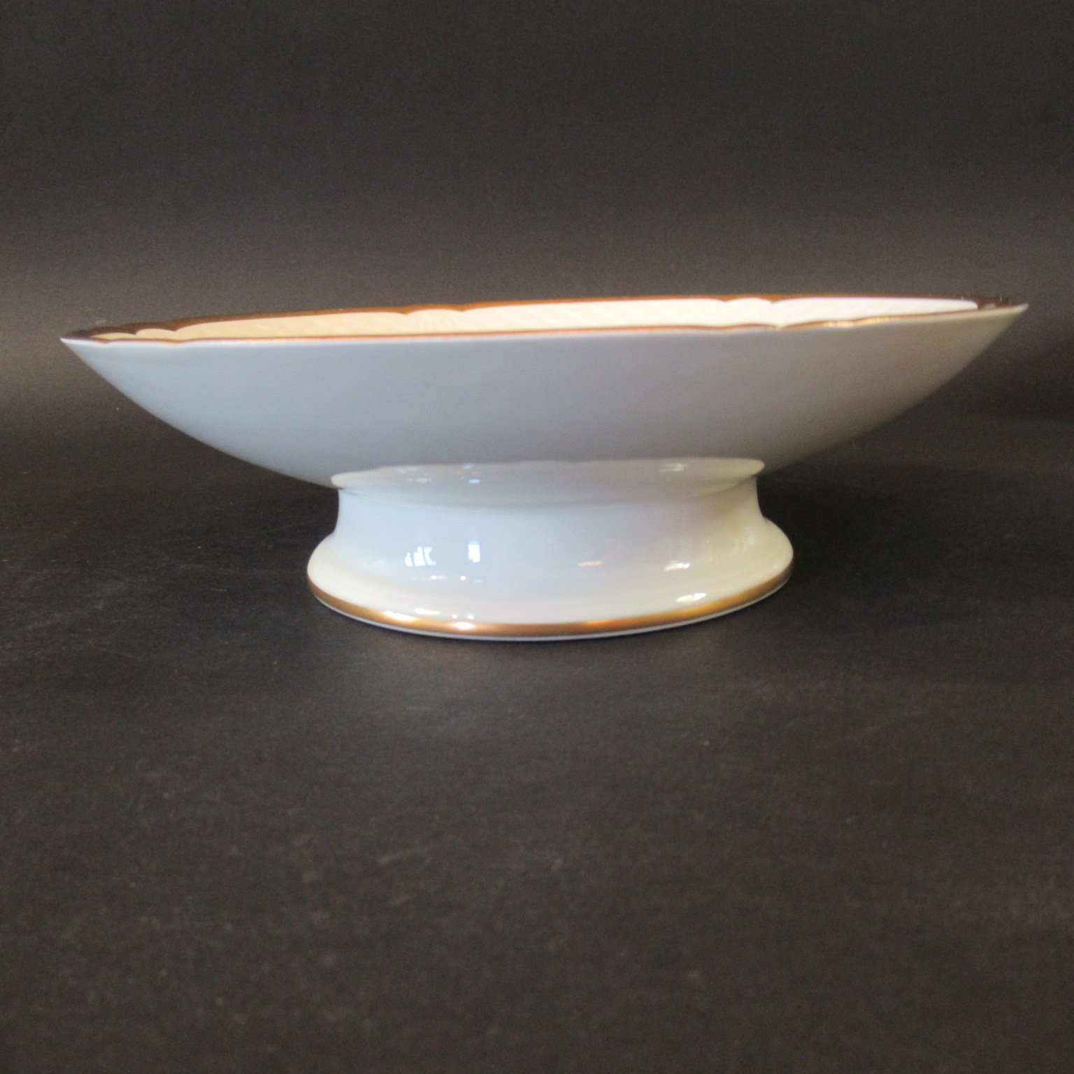 Rundt fad på fod samt aflangt fad fra Bing og Grøndahls Hostrup serie.