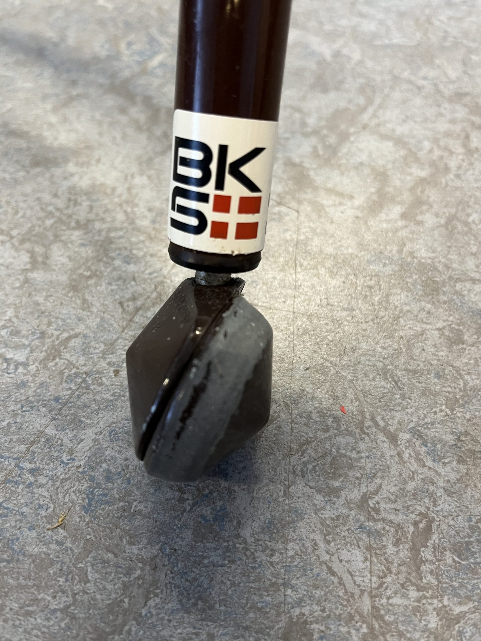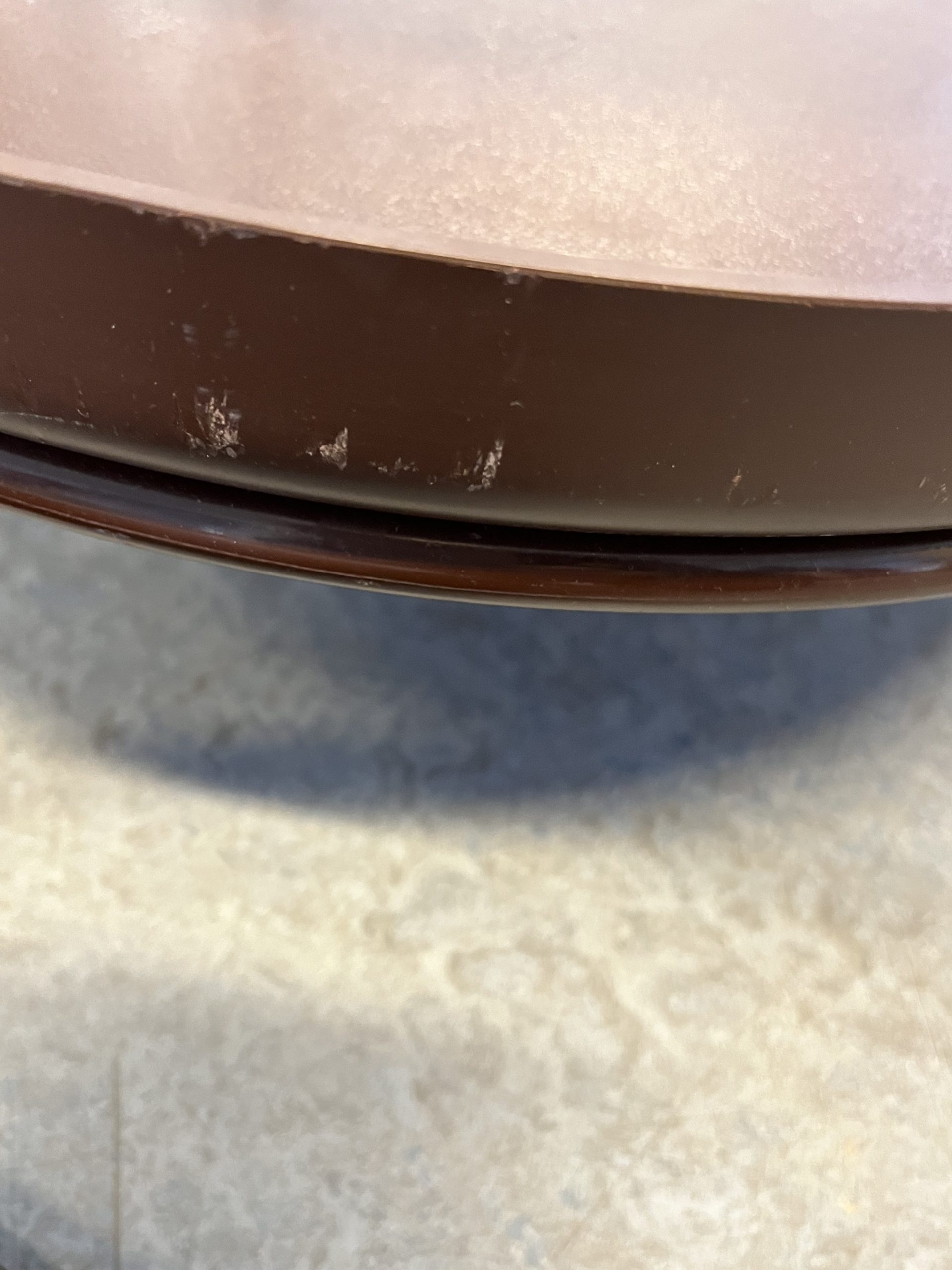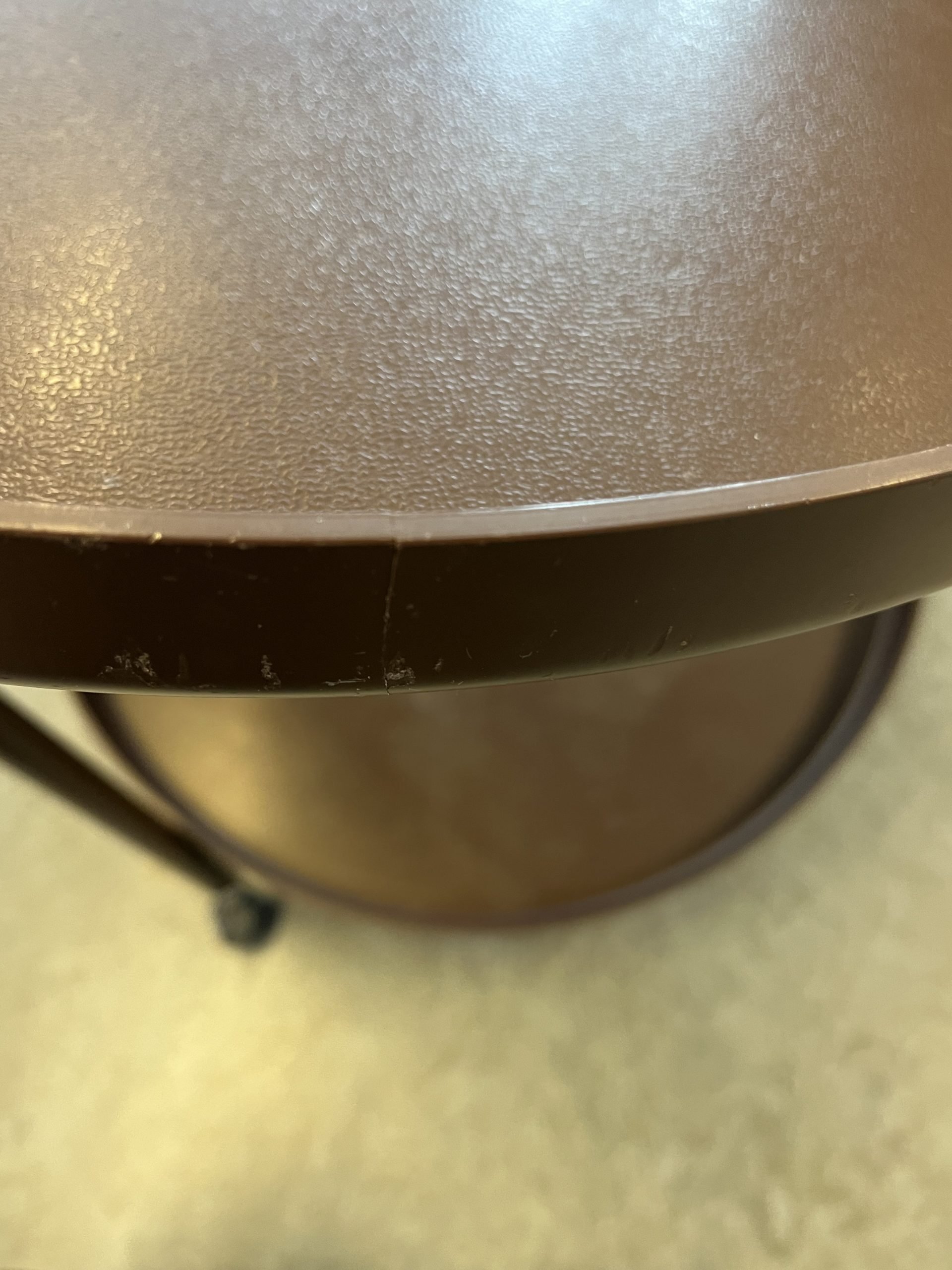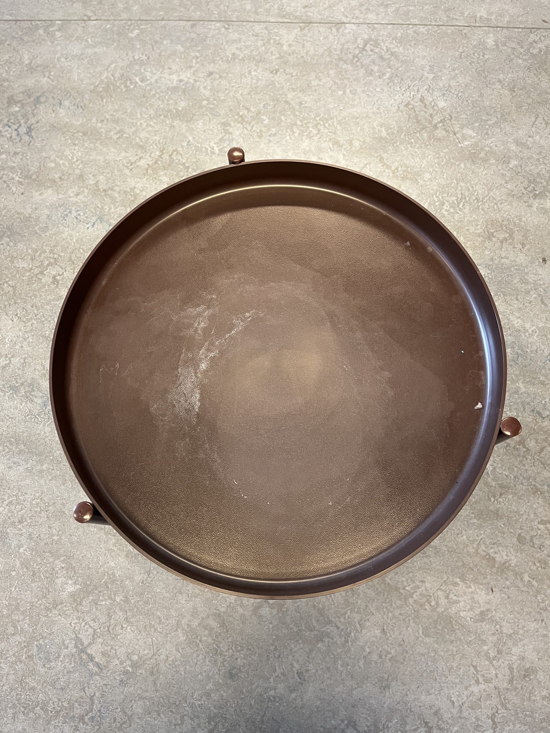 Retro bakke/rullebord fra BKS. Jernstel og 2 aftagelige bakker i brun plast. H: 54 cm – Ø: 46 cm.