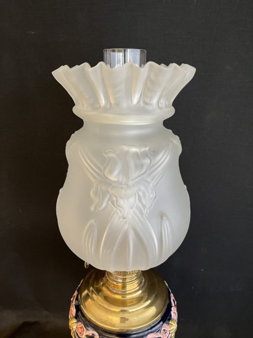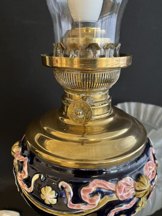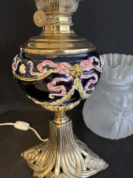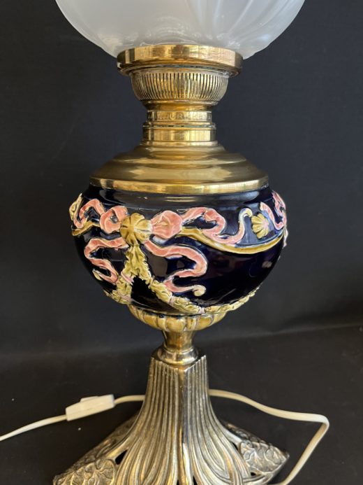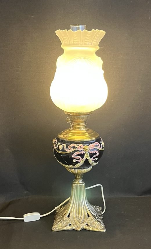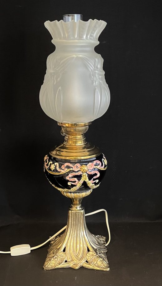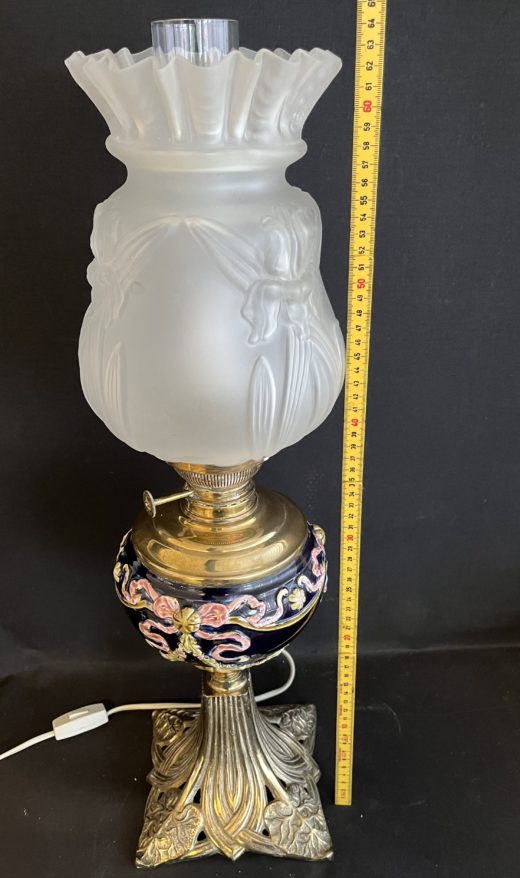 Ældre peteoleumsbordlampe omdannet til el. Højde 64 cm.