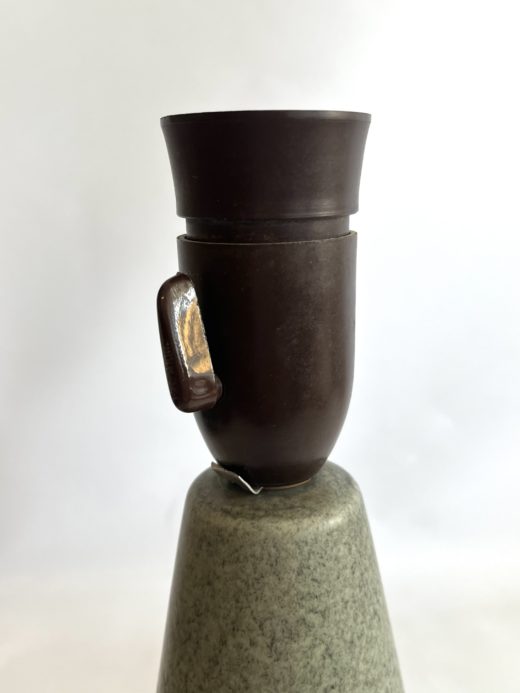 Einar Johansen bordlampe i grå/grøn keramik. Bakelitfatning. H: 26 cm.