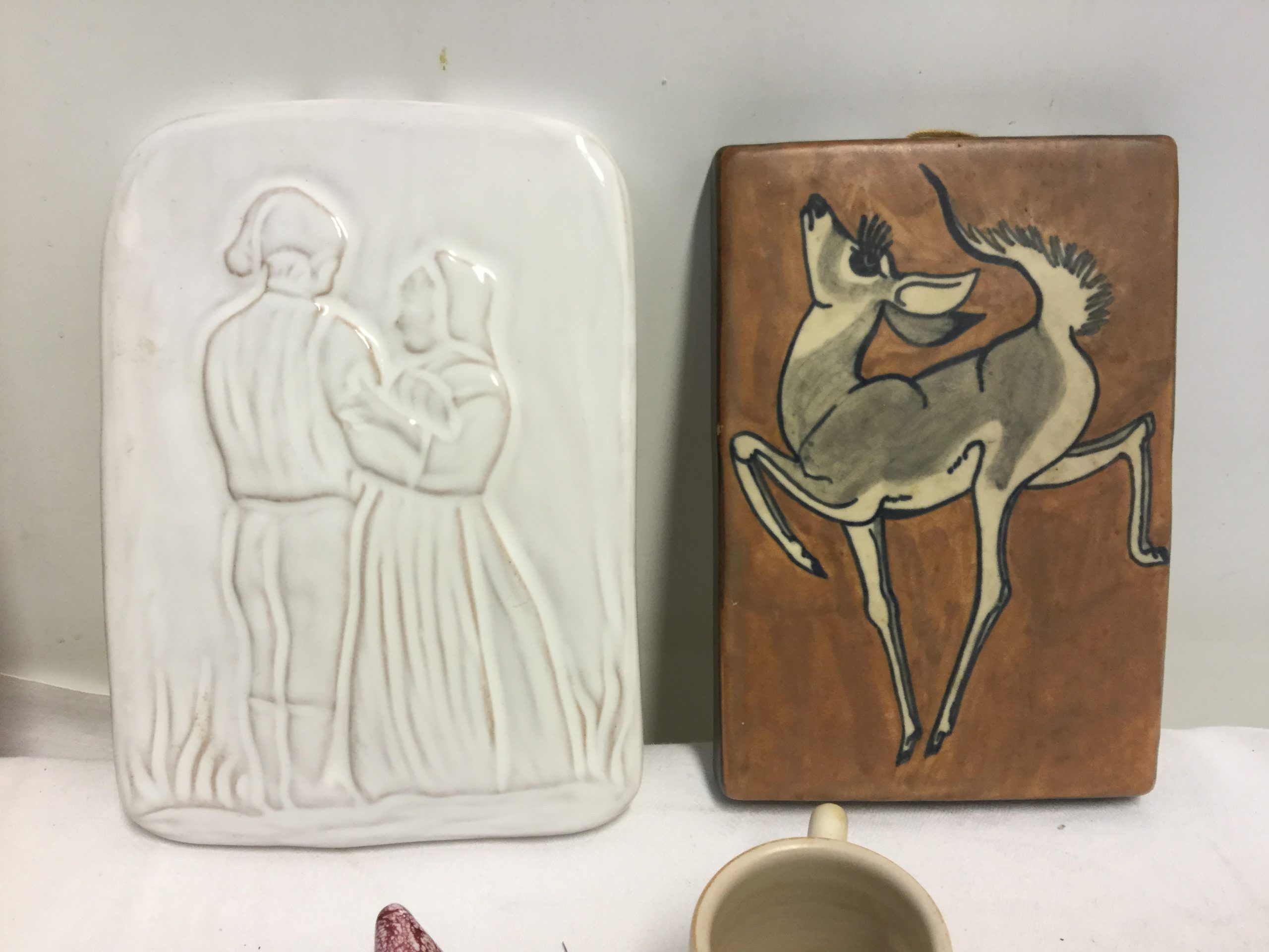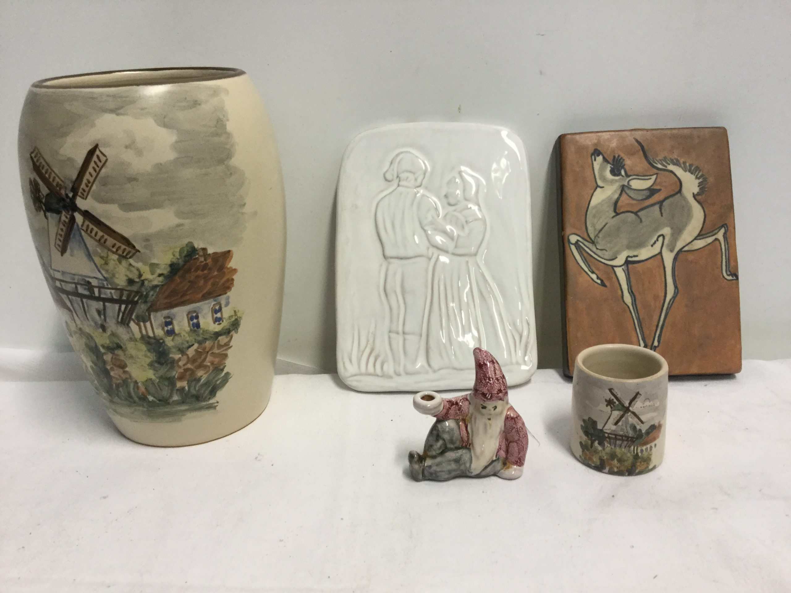 Vase H: 20 cm., Hvid relief: 17,5 x 12,5 cm., nisse H: 6 cm.