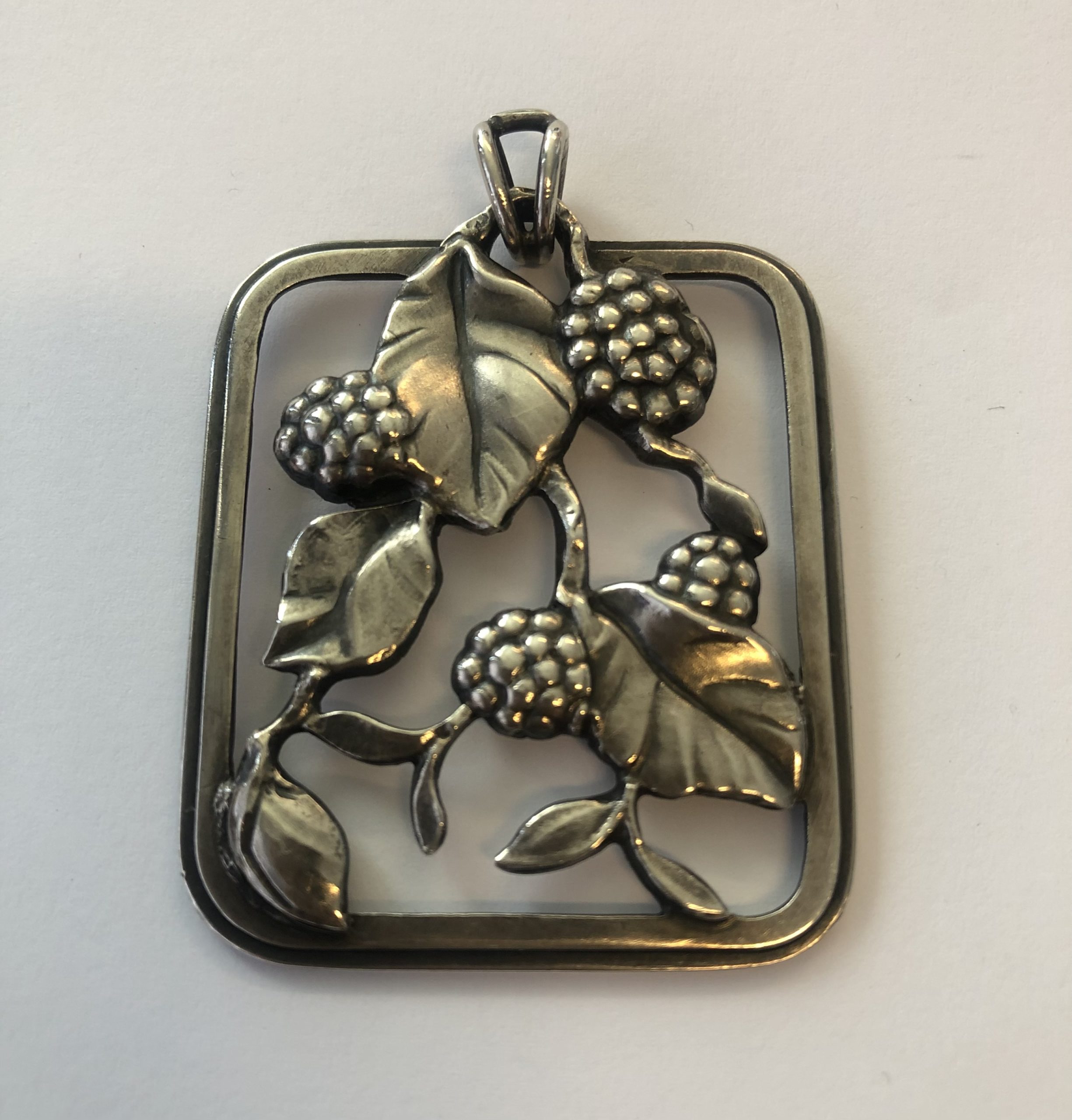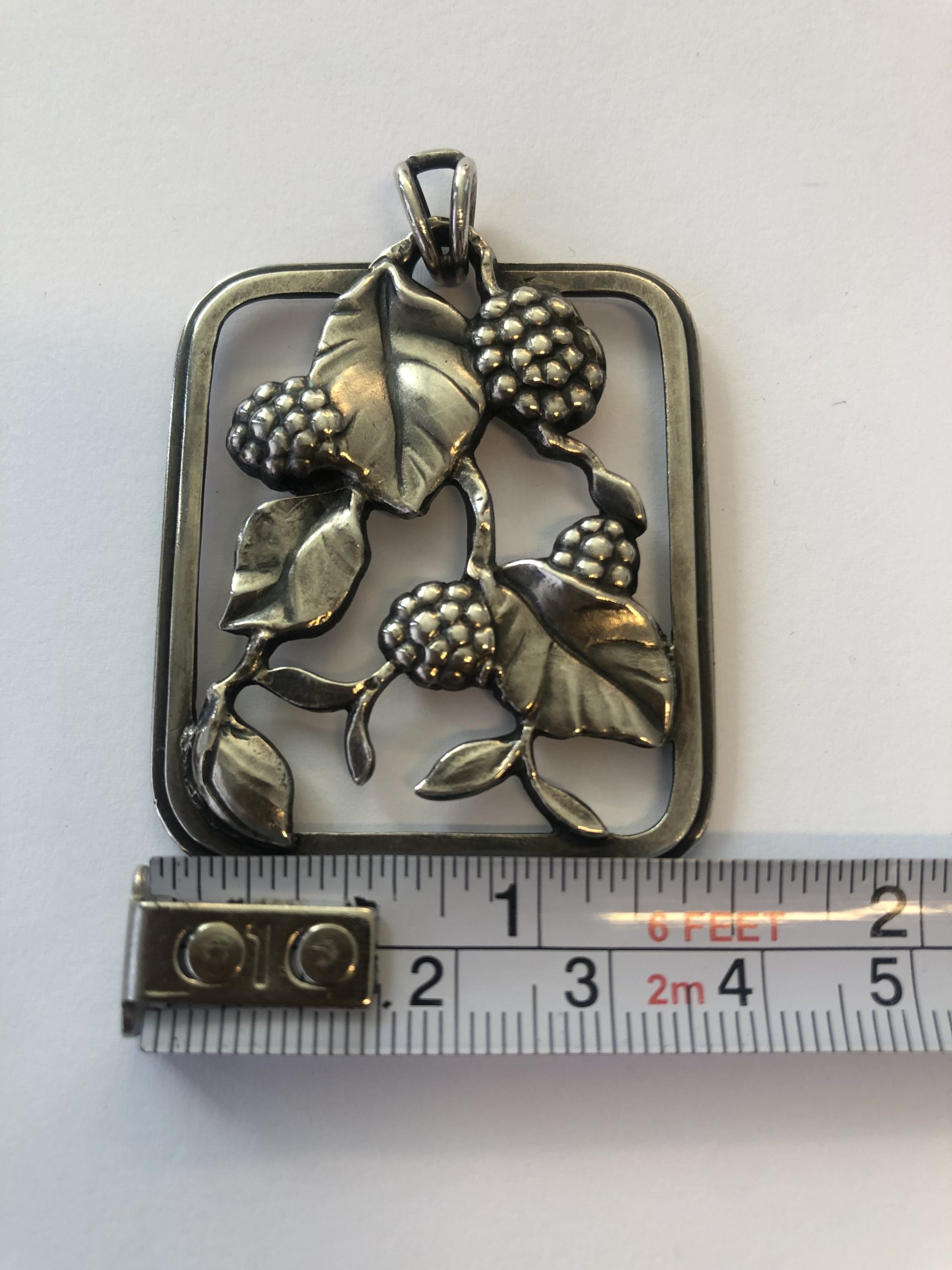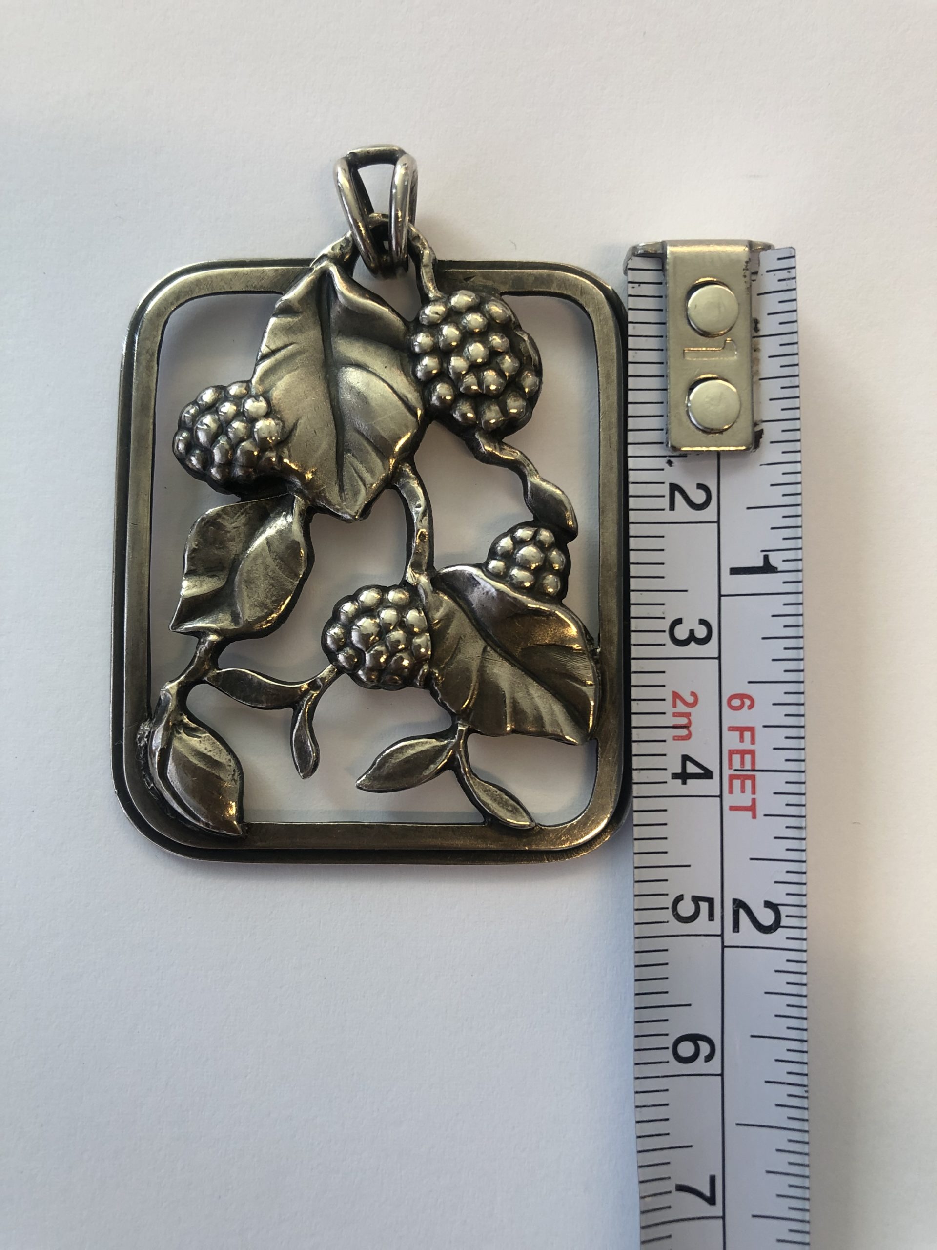 Stort sølvvedhæng til halskæde 4×3,5 cm. Stemplet F. Hingelberg 925S.
