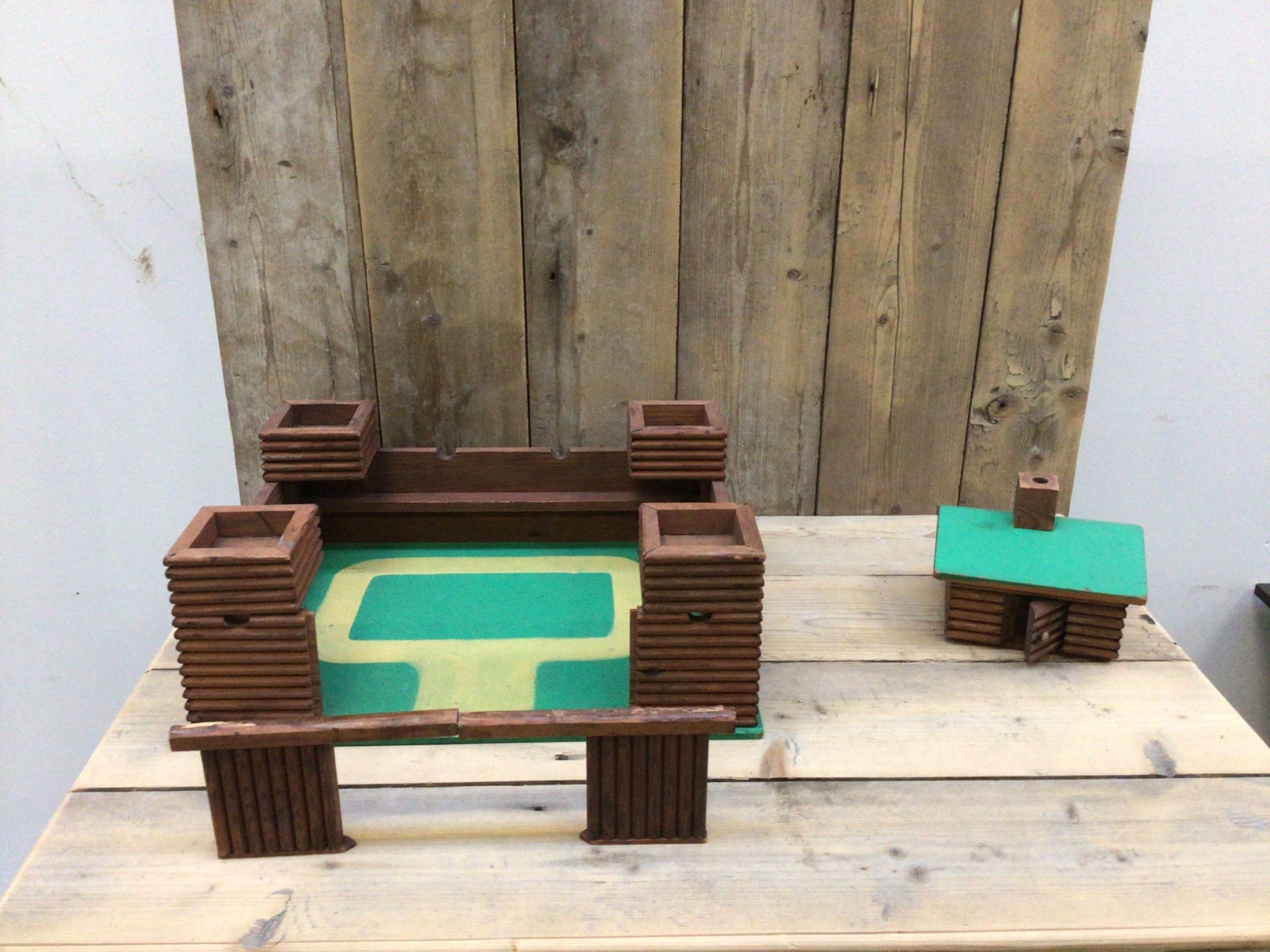 Legetøjs Fort – + lille hytte, hvor skorstenen trænger til en klat lim.