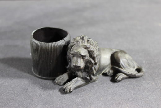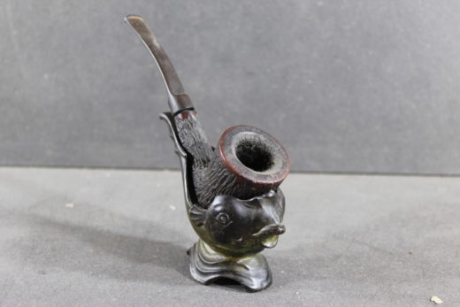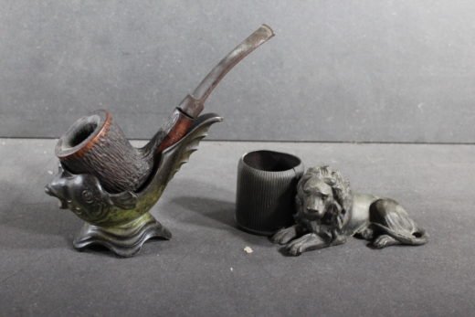 Gammelt pibe-udstyr i metal + pibe – aukt. nr. V322