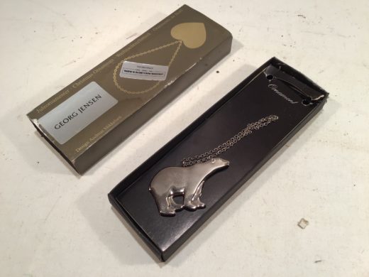 Æske beskadiget, bjørn L: 5,5 cm., platin plated.