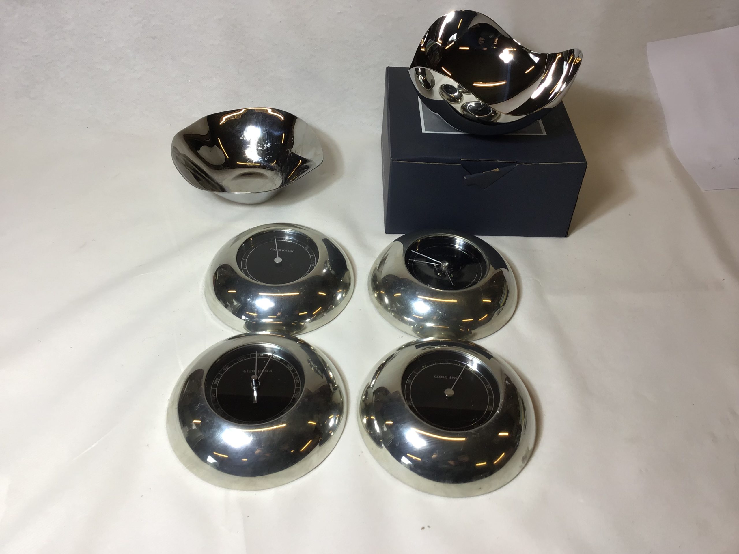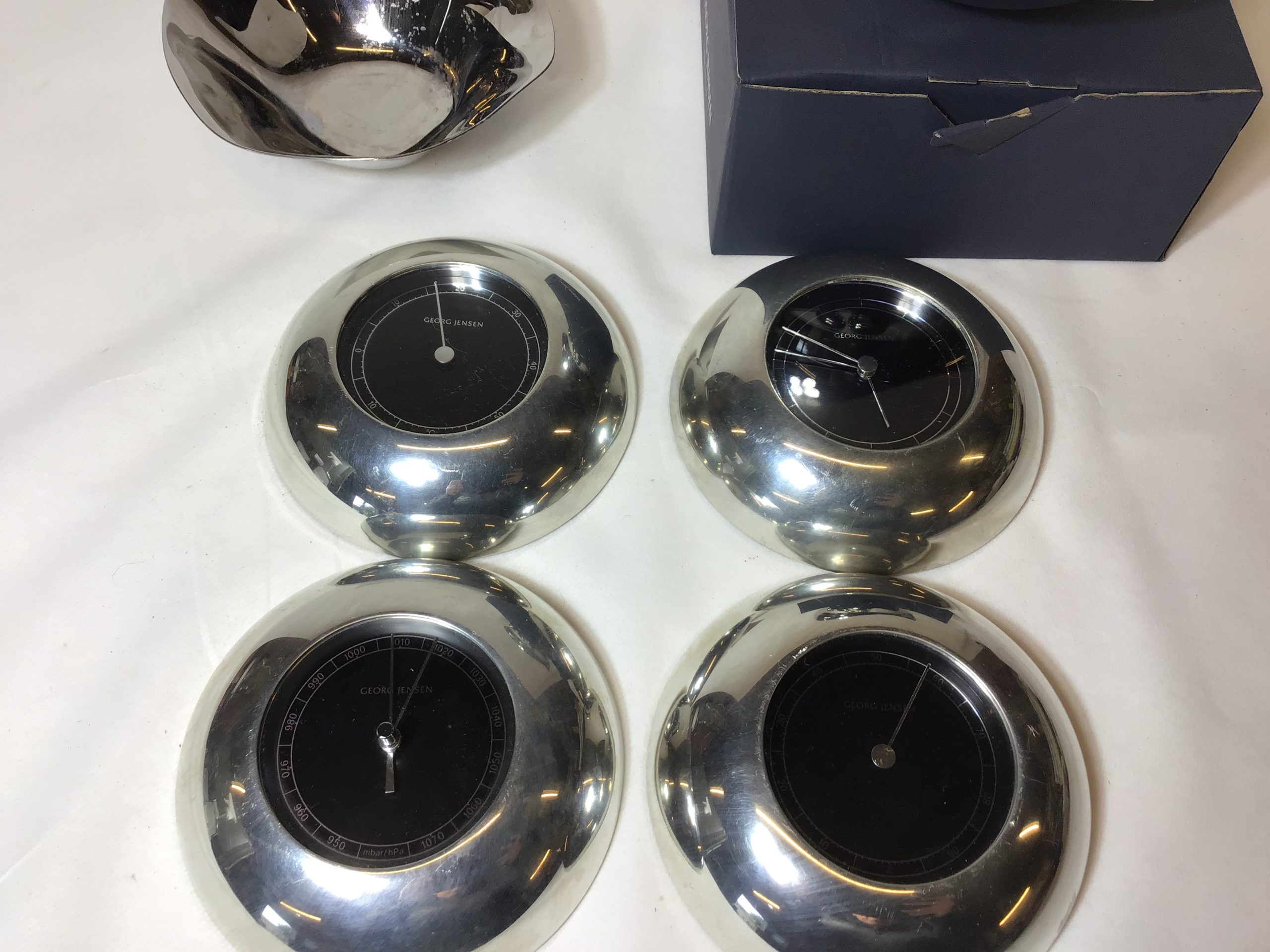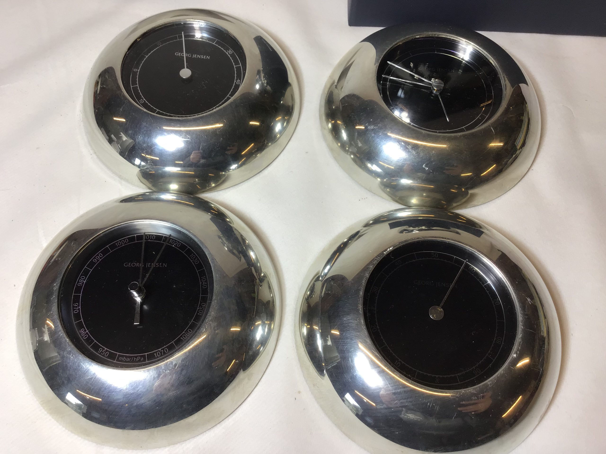 barometer, hygrometer, termometer og ur samt 2 skåle, den ene i original indpakning. Ikke afprøvet.
