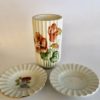 Vase H: 10 cm samt 2 asietter Ø: 5 cm.