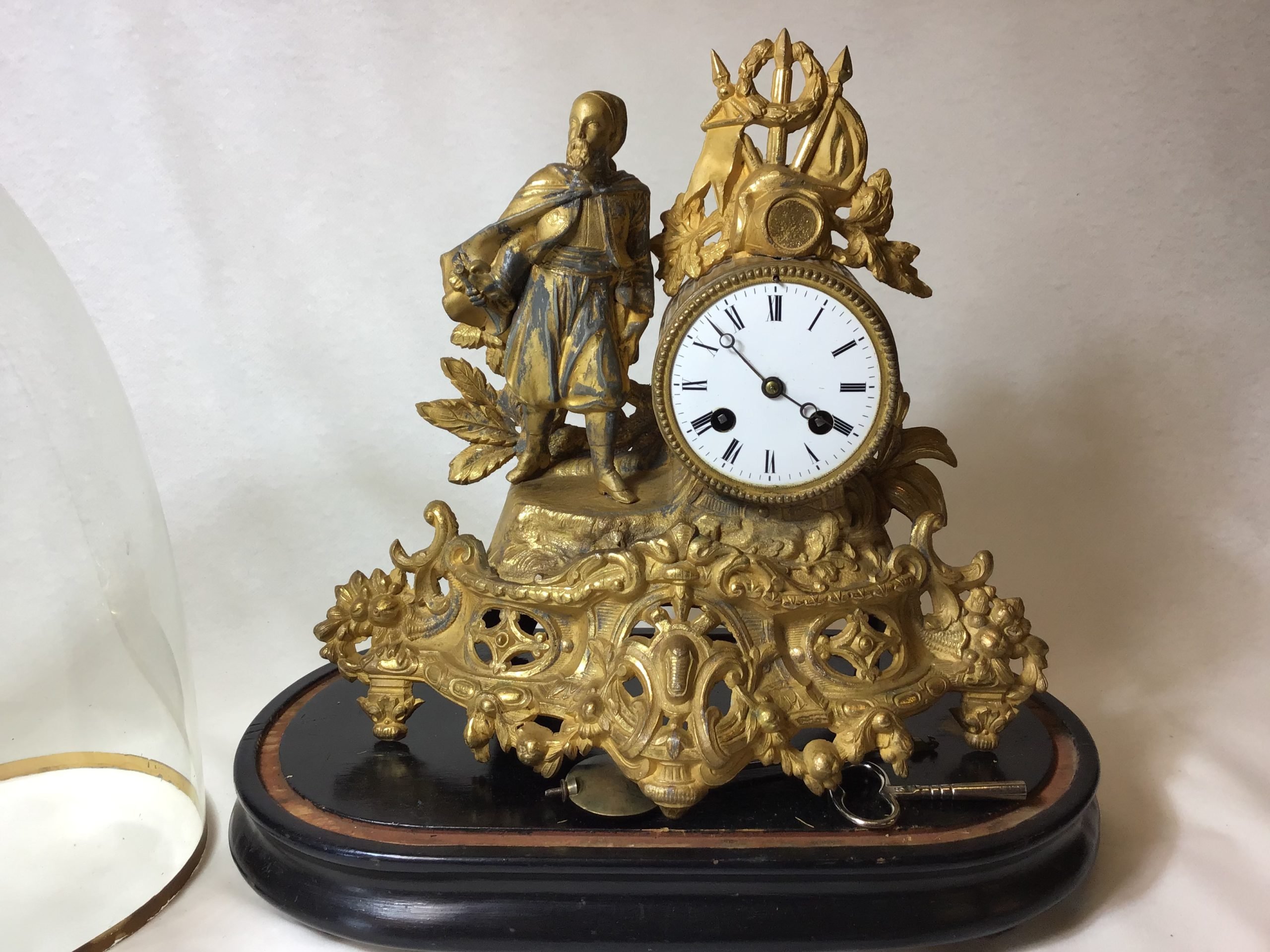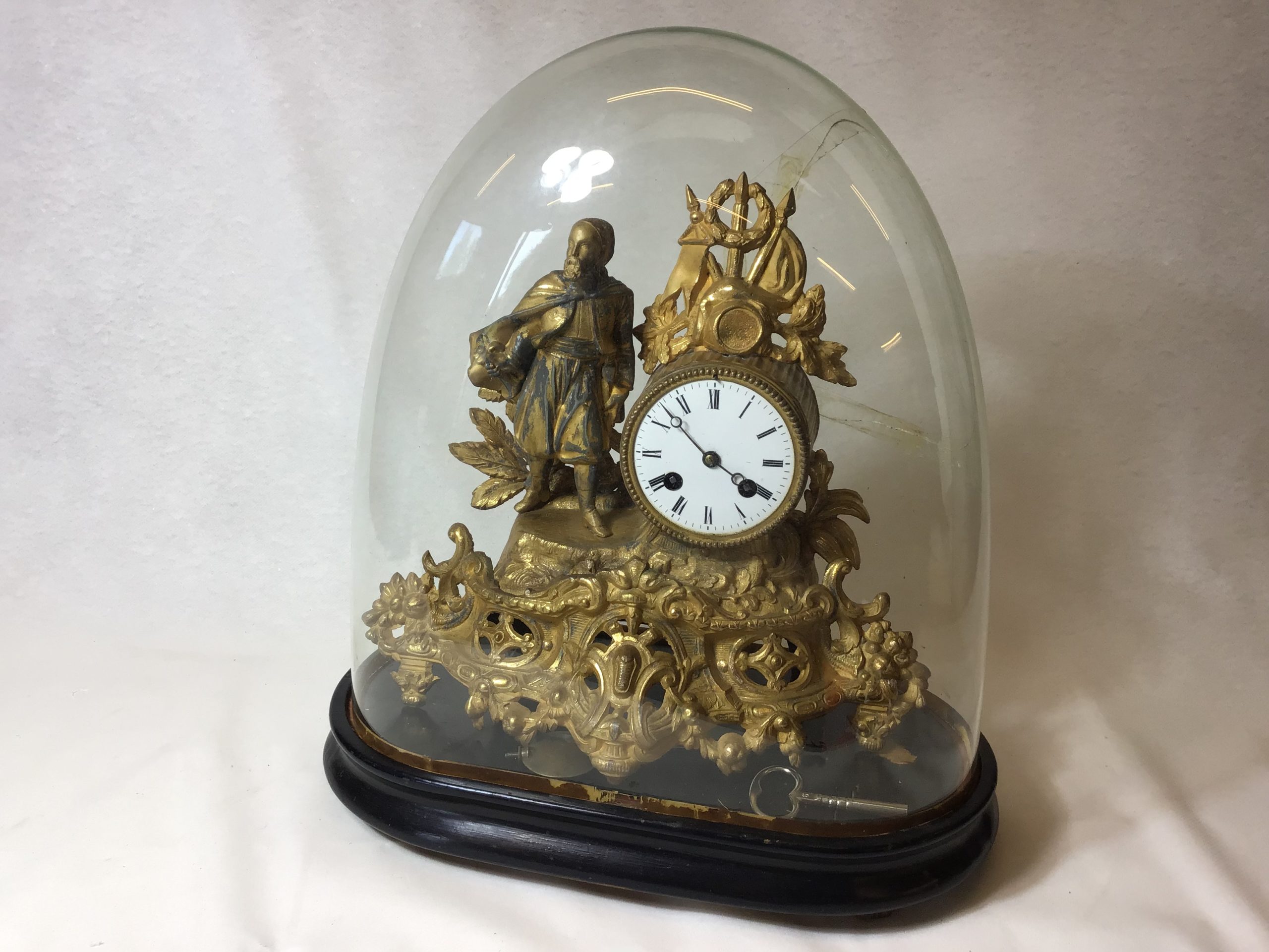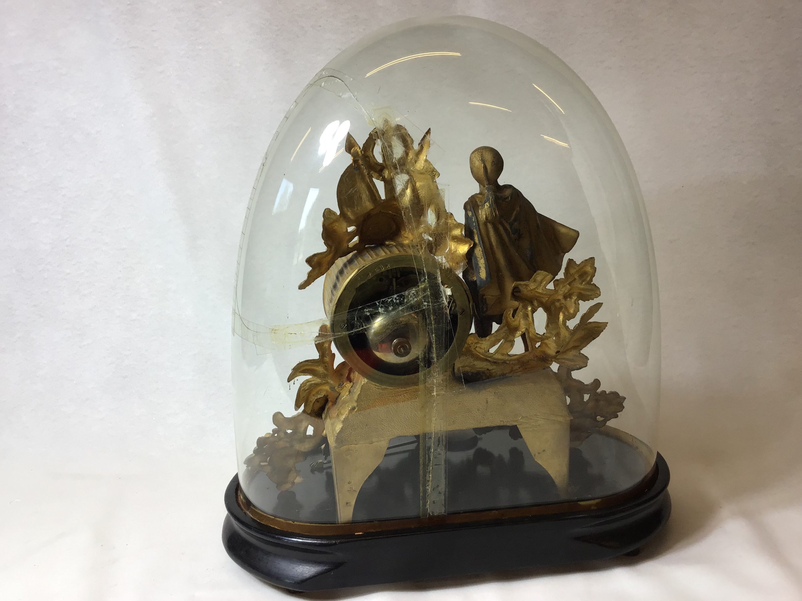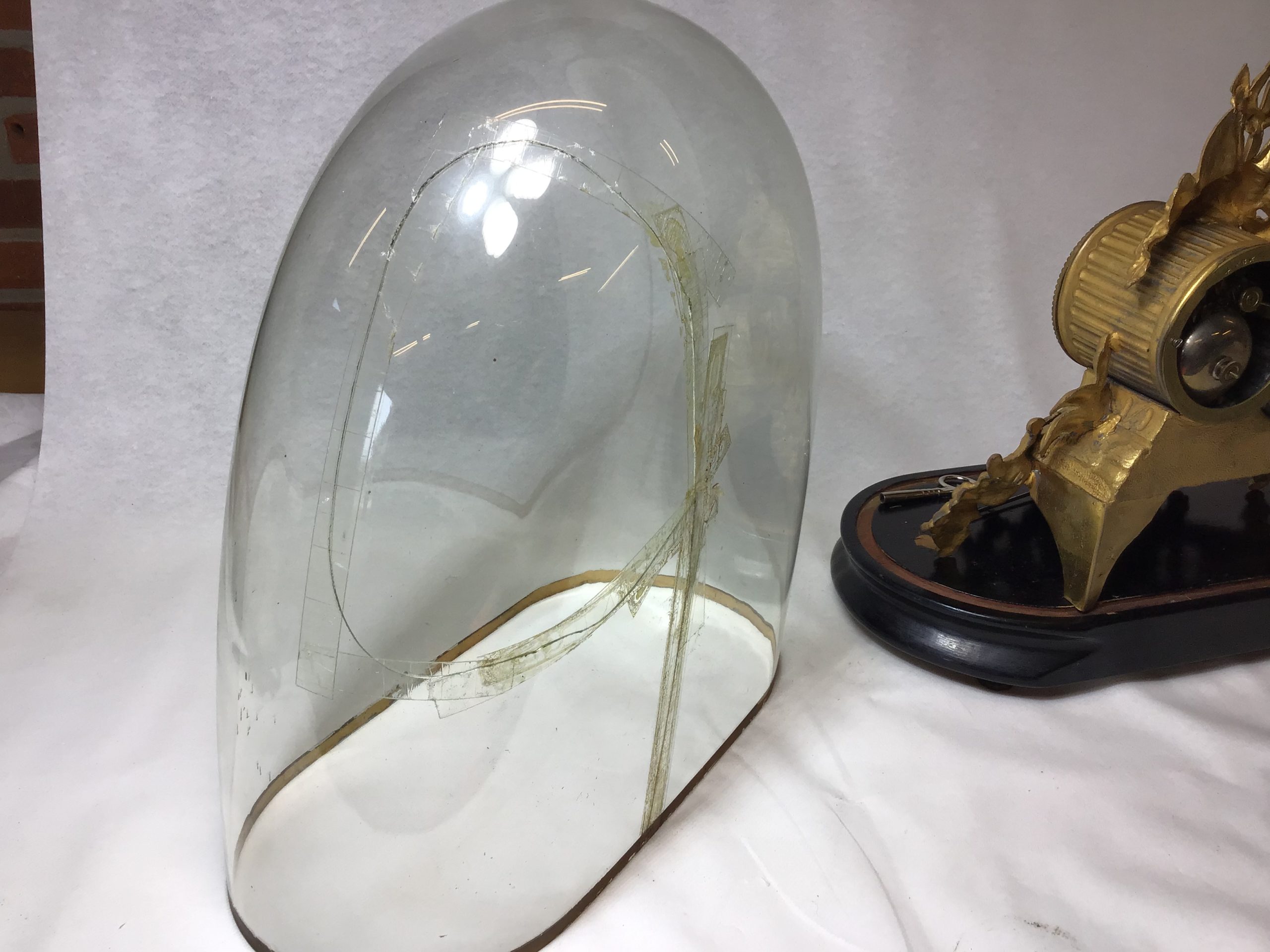 Glas kuppel med revner. H: 37 cm. u. kuppel, funktion ukendt. der er nøgle til at trække uret op.