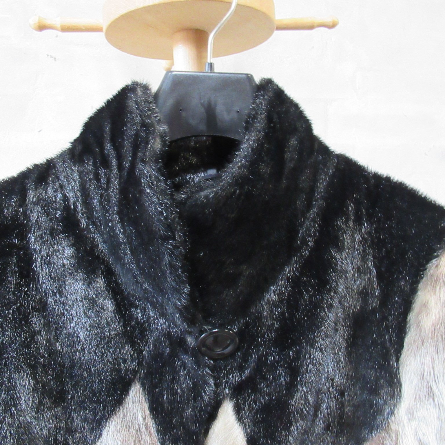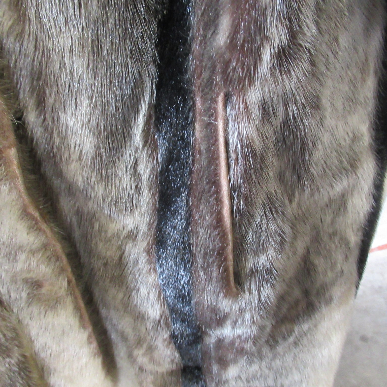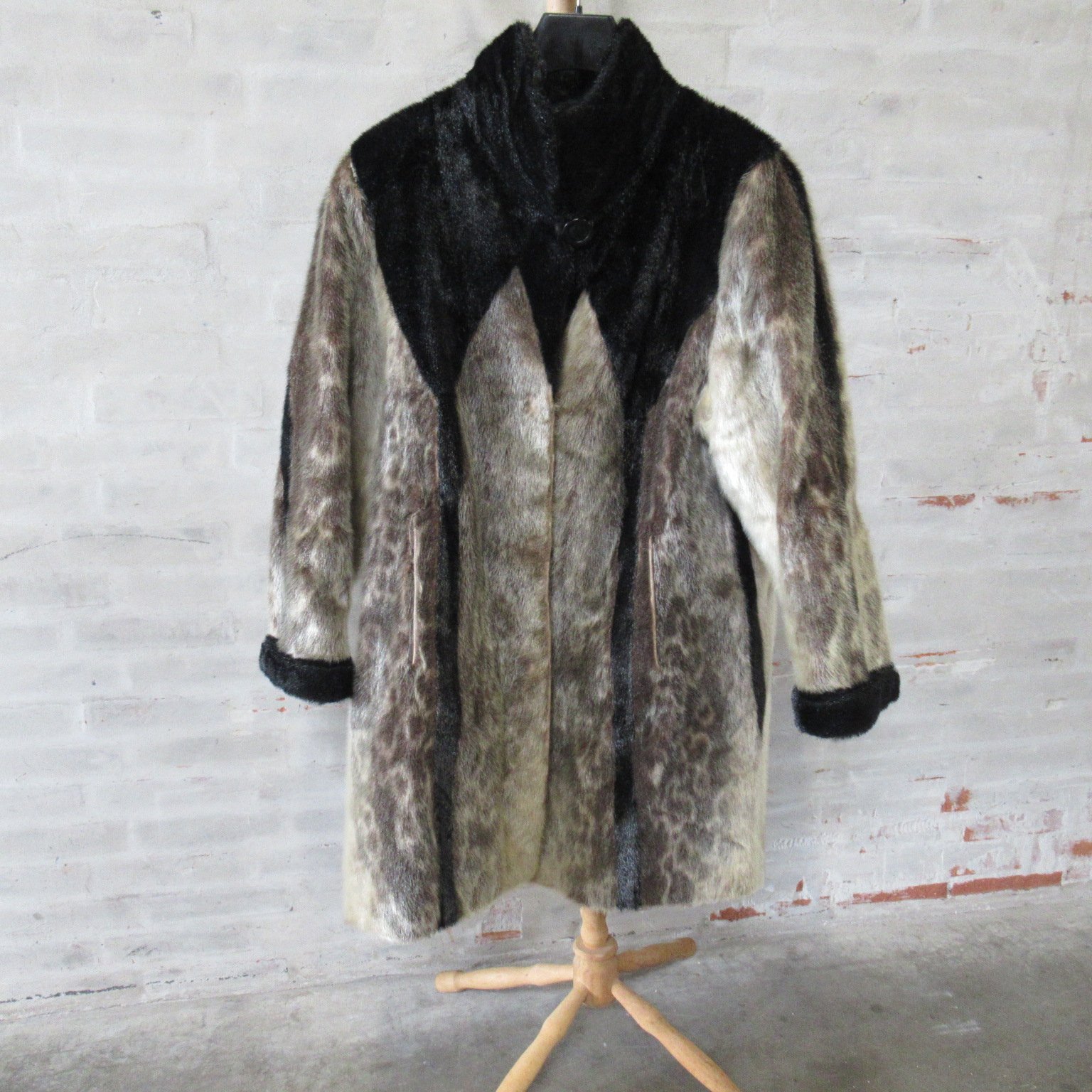 Størrelse fremgår ikke men måler fra skulder til skulder 45 cm, fra ærmegab til ærmegab 68 cm og fra nakke til nederste søm 104 cm.