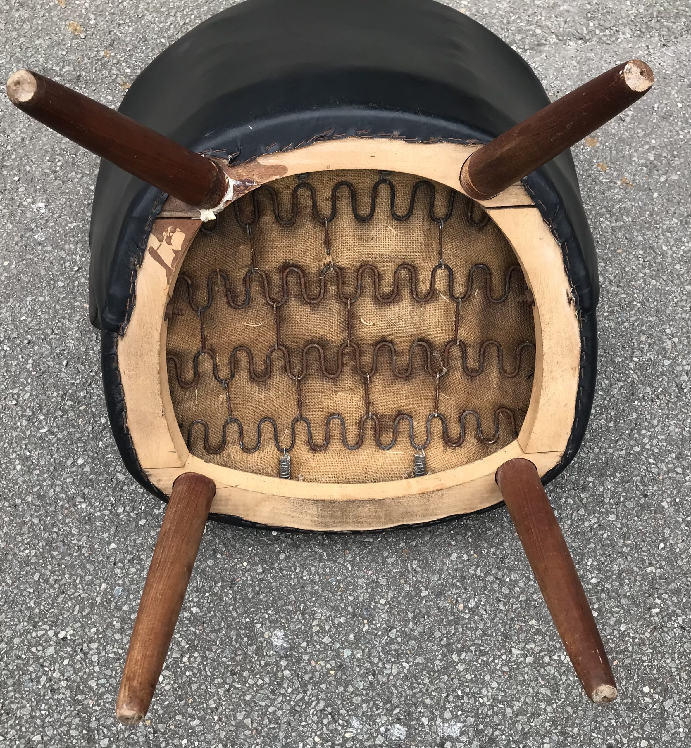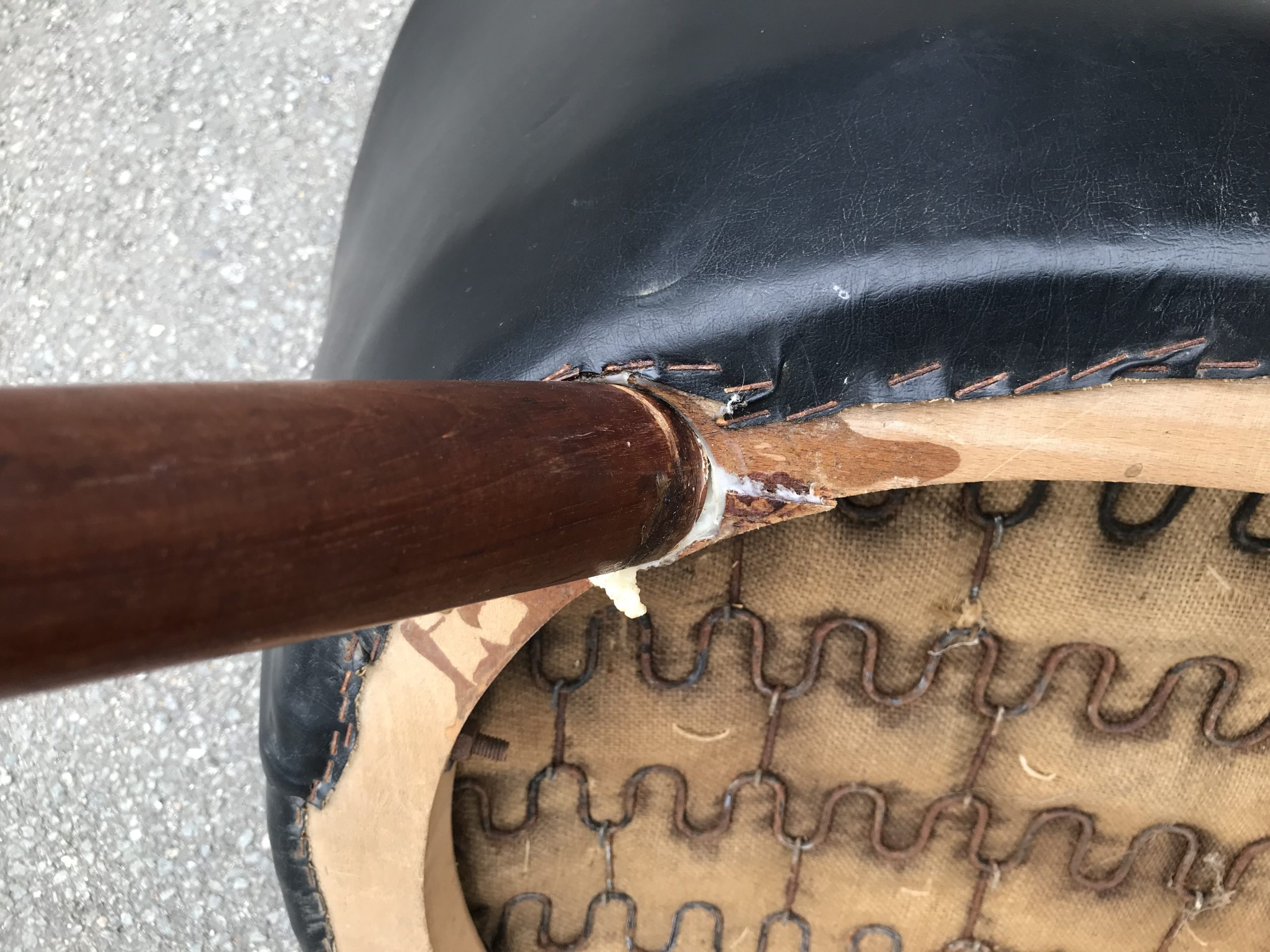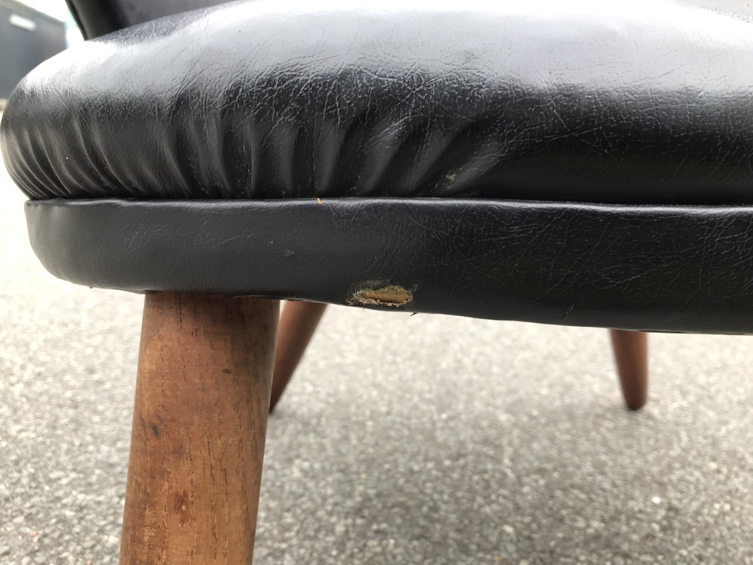 Stolen fremstår med forskellige brugsspor fx. Et par huller, som vist på billeder samt reparation af det ene ben.