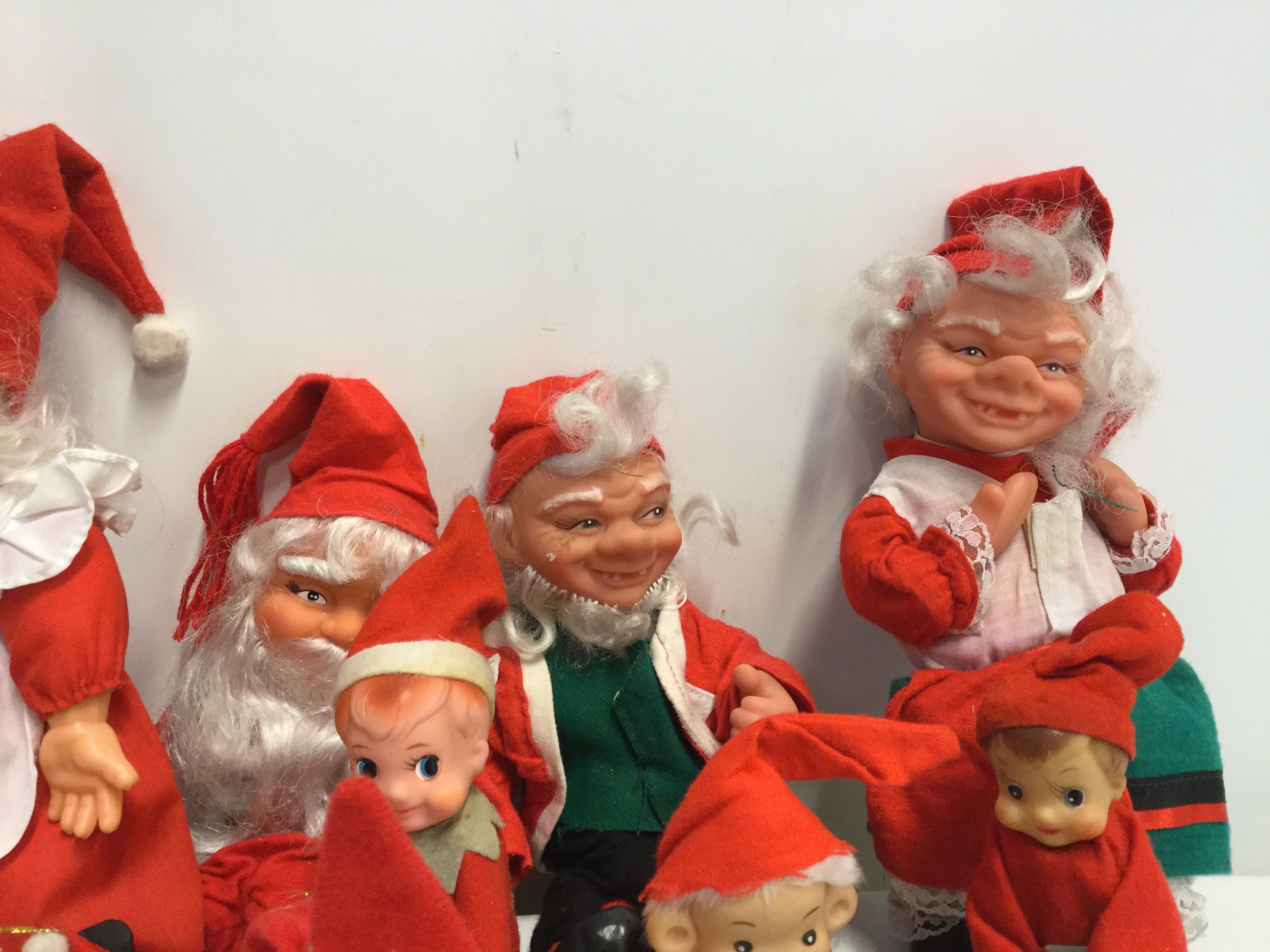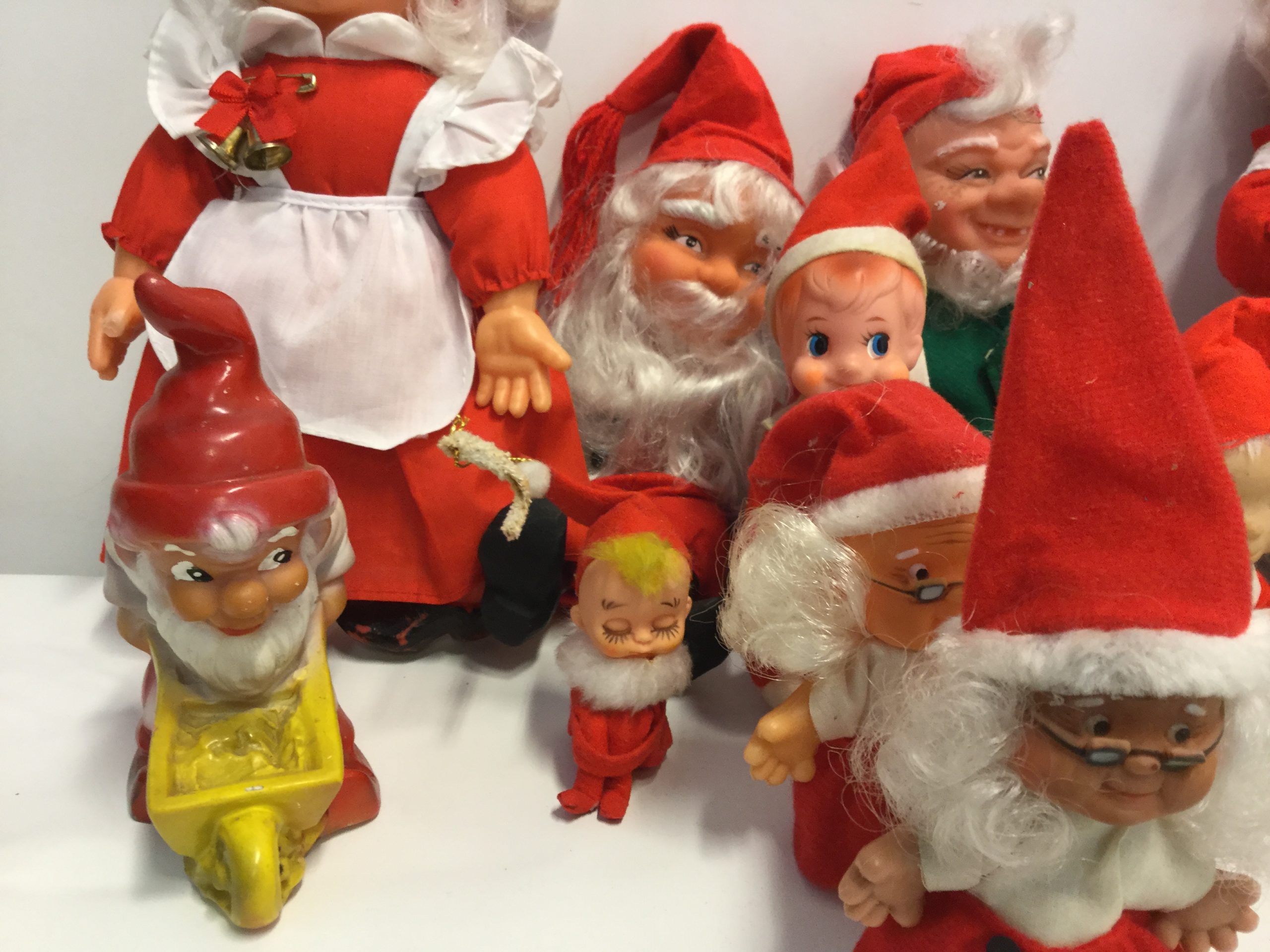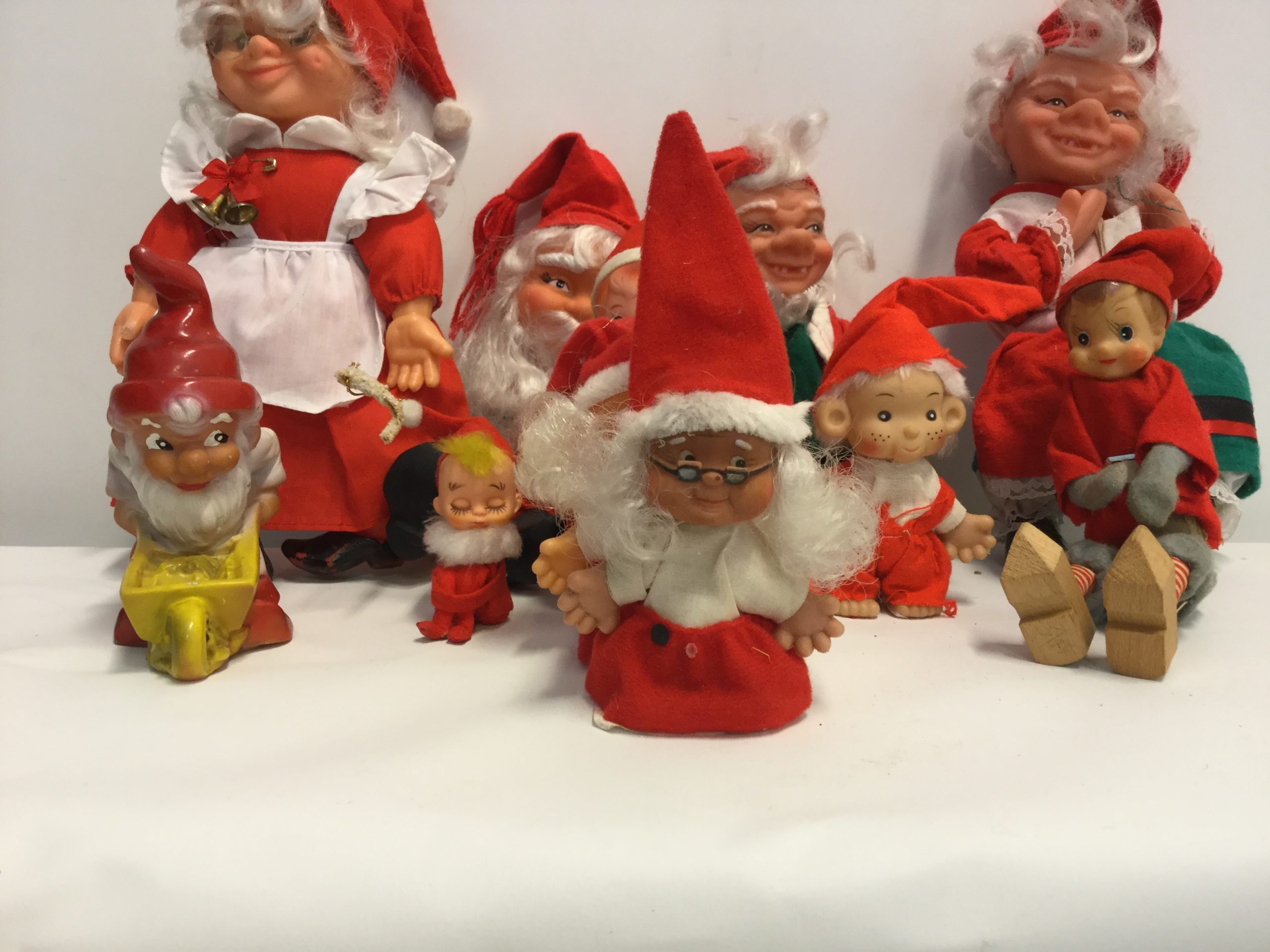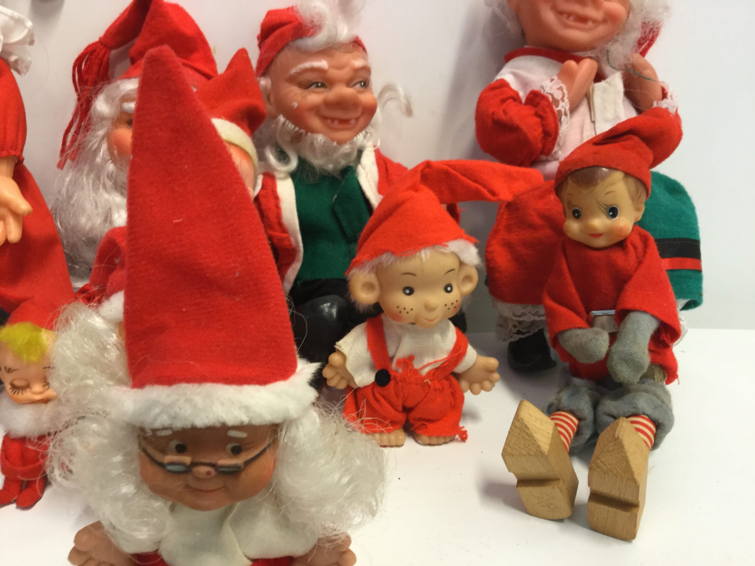 Blandede julenisser med gummiansigter, 11 stk.