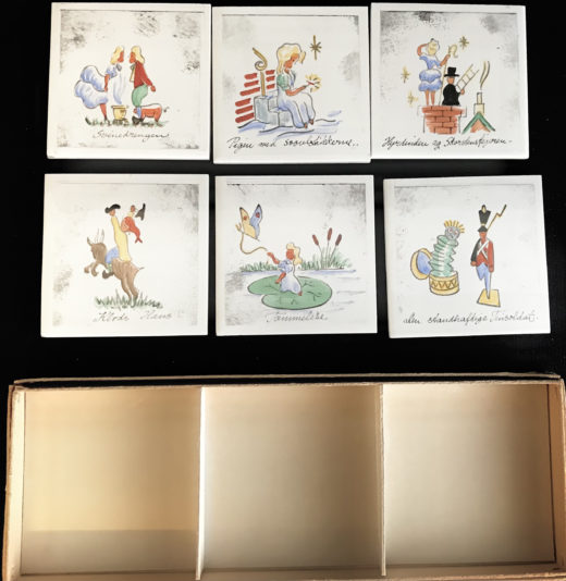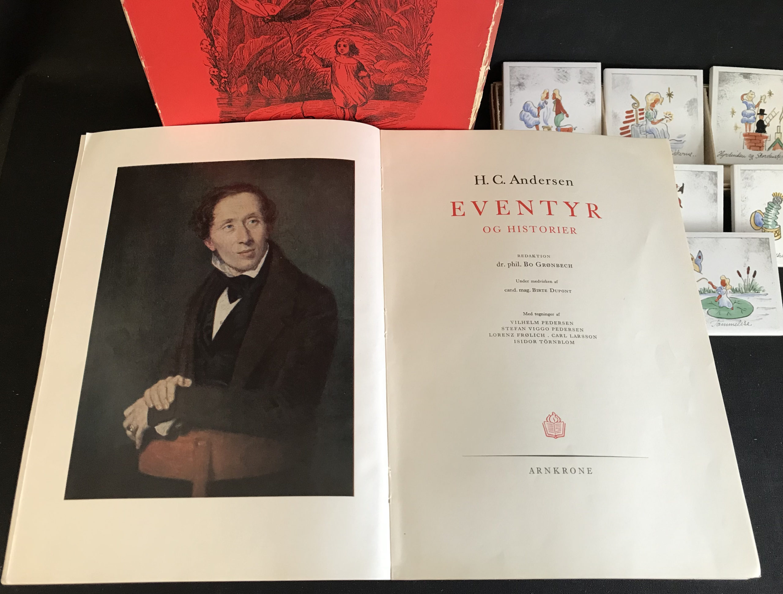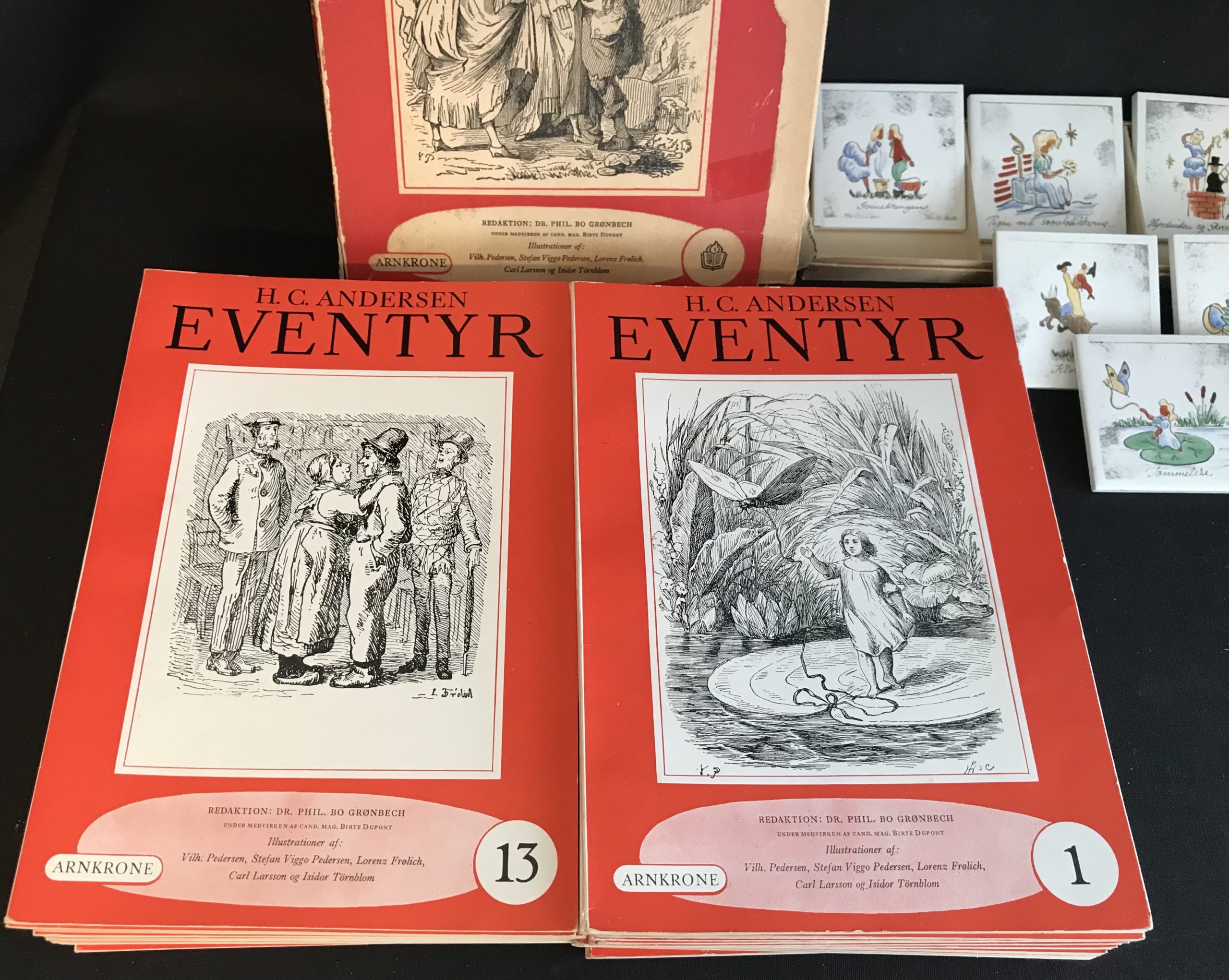Gamle H.C. Andersen eventyr samling a 24 hæfter fra Forlaget Dansk Arnkrone samt håndmalede minikakler 7,5X7,5 cm med eventyr.
