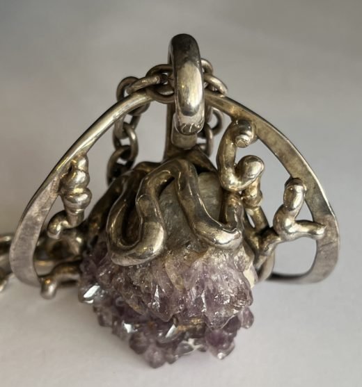 Har stempel “Denmark”. Vedhæng måler 6,5×7 cm.