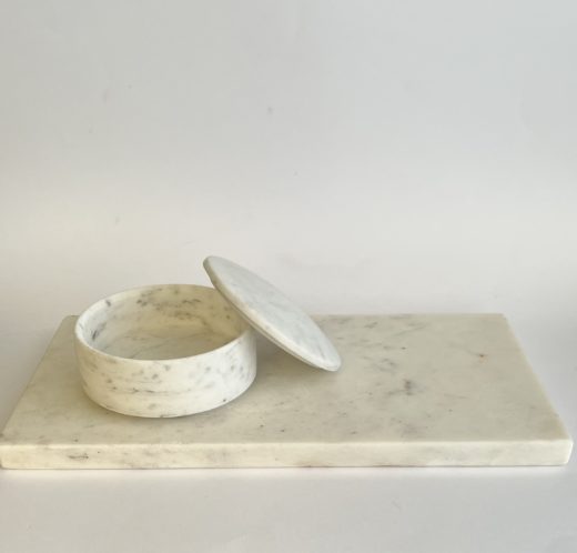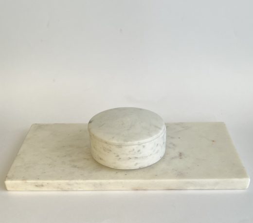 Marmorskrin med låg  Ø: 10 cm – H: 4 cm. Mærke ukendt.