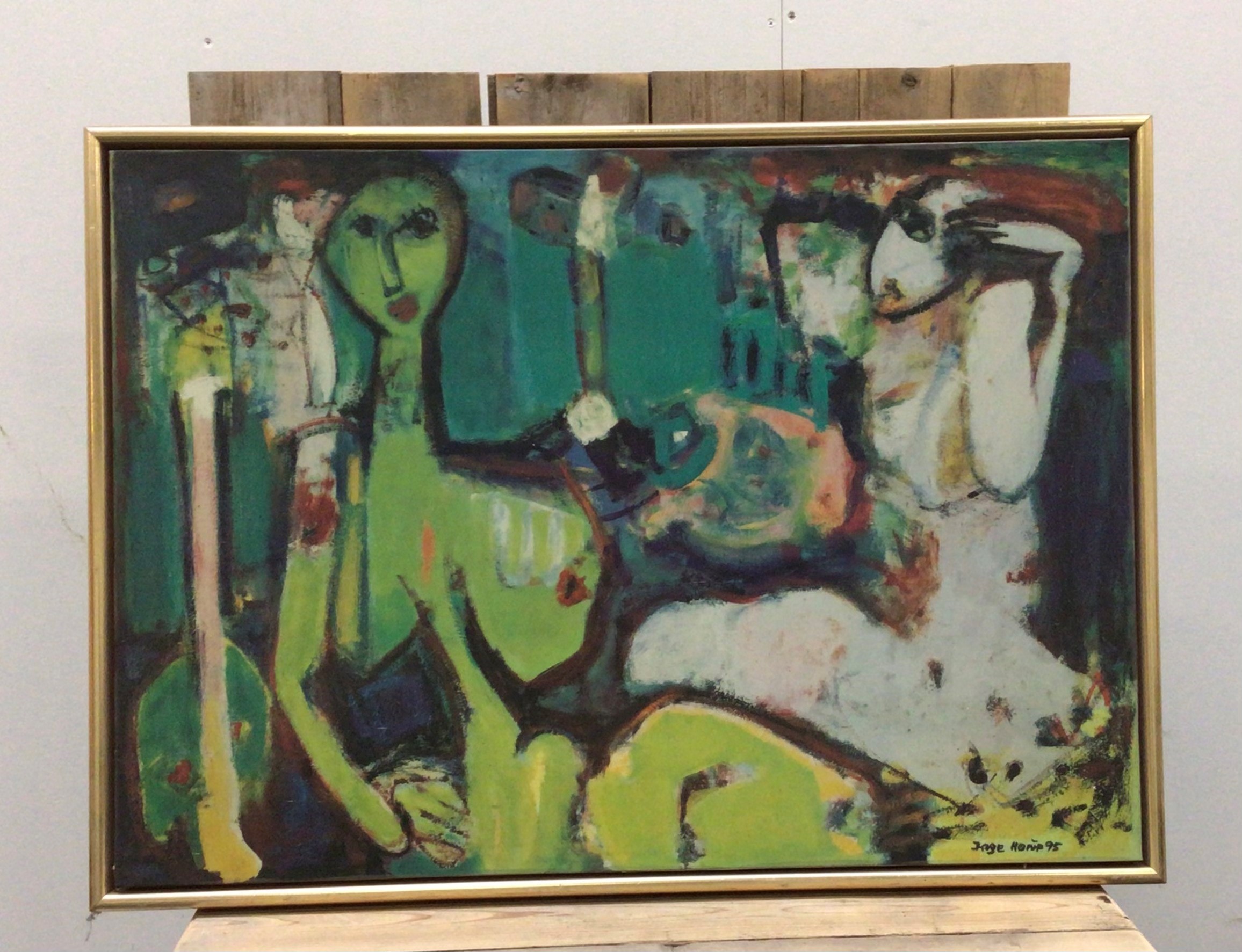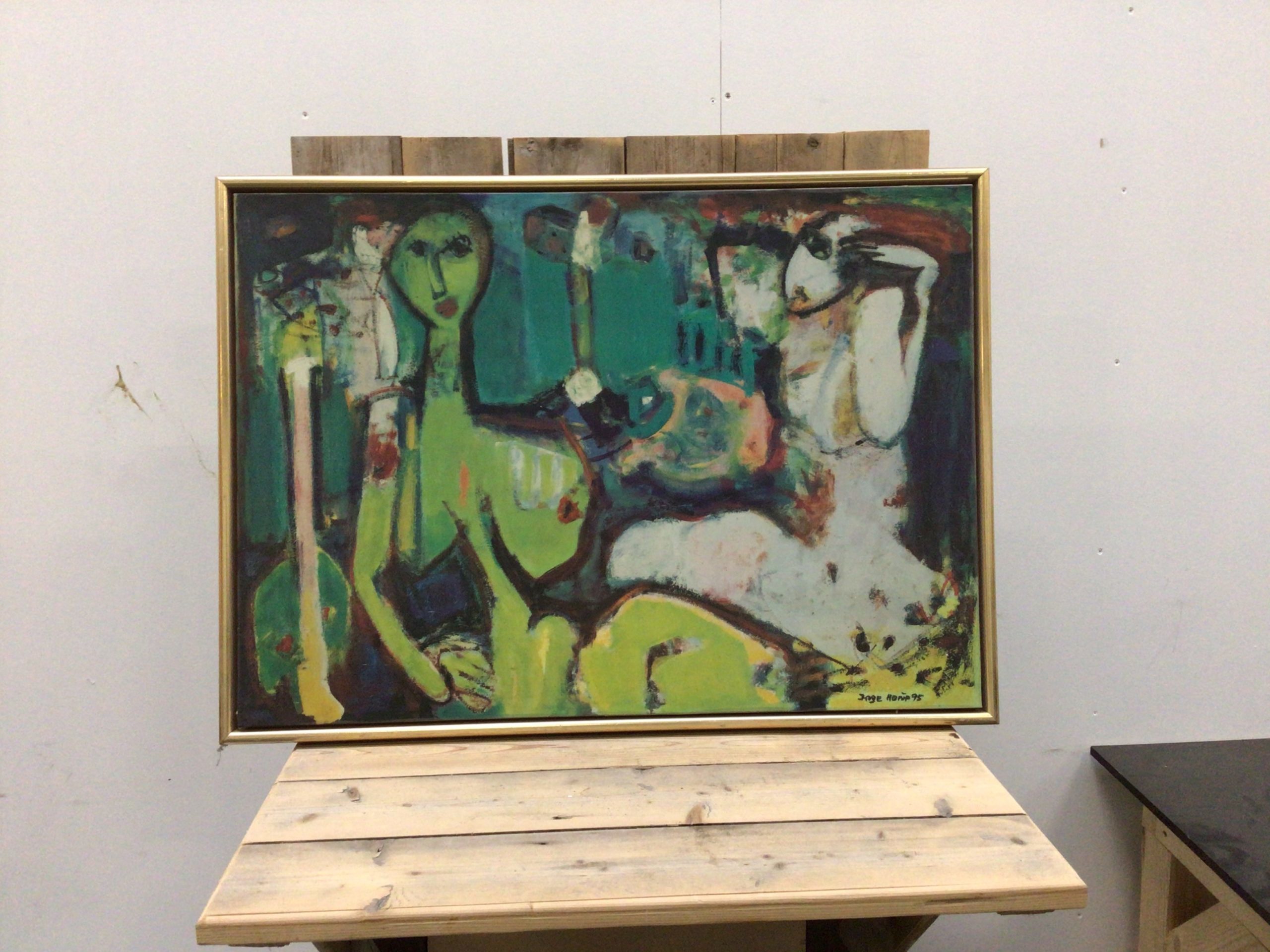 Billedet er lige klar til at blive hængt og måler inkl. ramme: