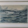 Indrammet tryk med havmotiv, mål 60 x 78 cm. Ramme af forsølvet træ.