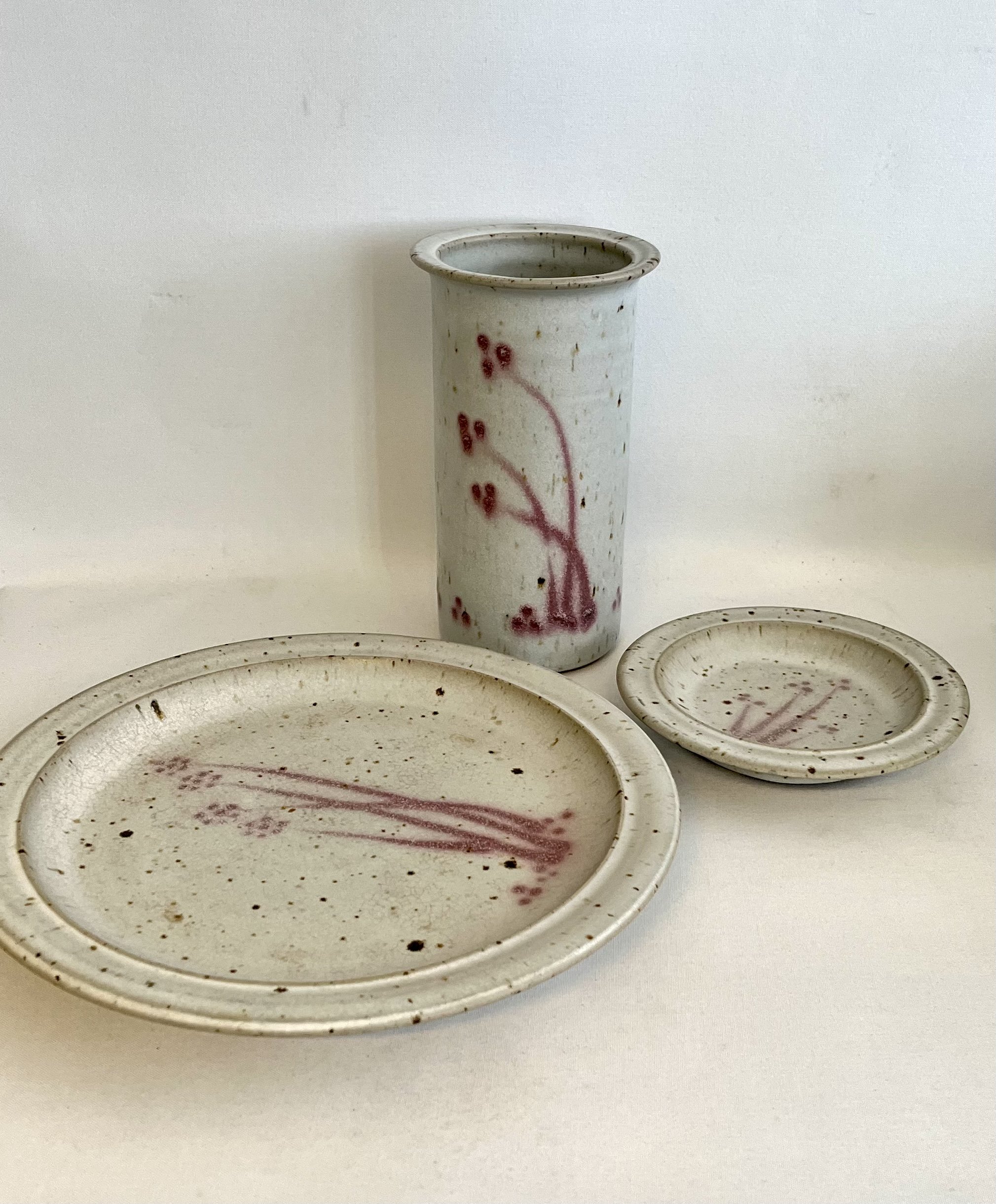 Vase H: 20 cm samt fade hhv. Ø: 27 og 15,5 cm.
