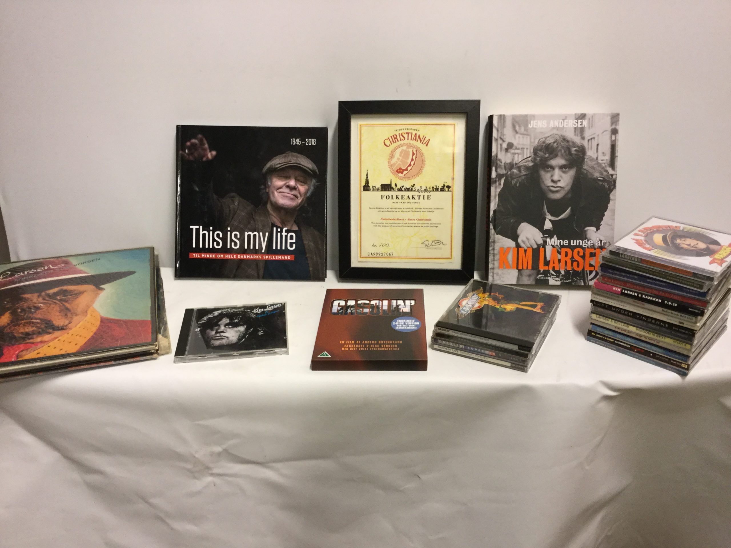 cd´er, Lp´er, 1 dvd, 2 bøger samt en folkeaktie til Christiania