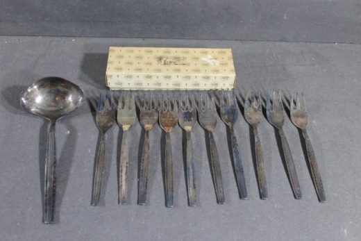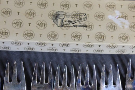 KJA-Capri sølvplet 10 stk. kagegafler + en sovse-ske aukt. nr. V337