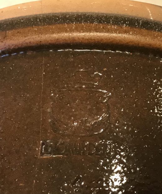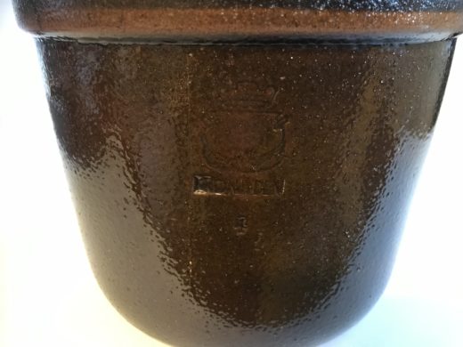 Ældre syltekrukke med Kronjyden stempel på front.