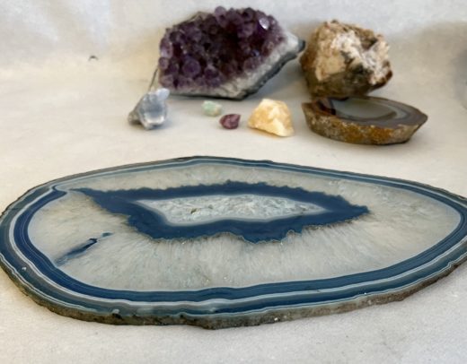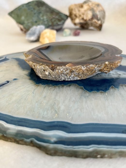 Agat Geode Skive L: 27 cm – skål L:10 cm – Amesthyst L:16 cm.