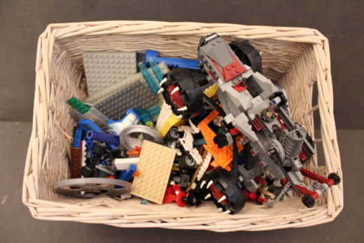 En kasse blandet lego