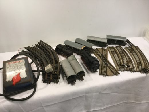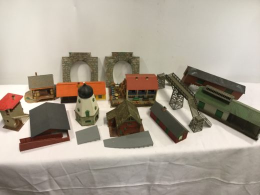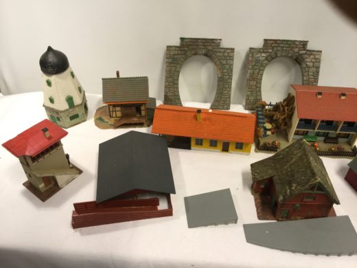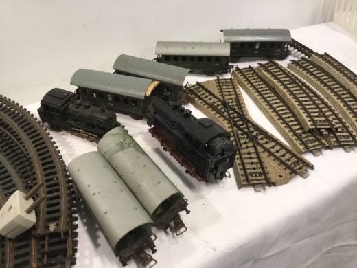 15 banestykker, 7 vogne, bygninger samt strømforsyning