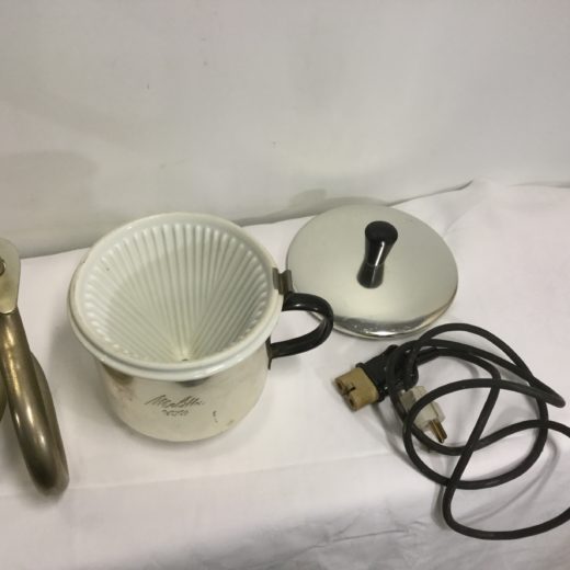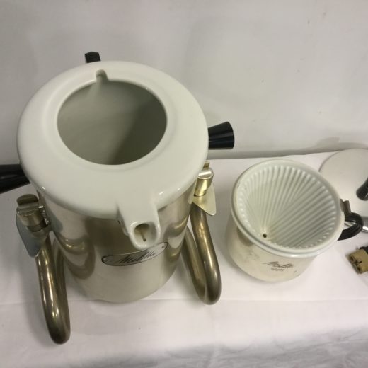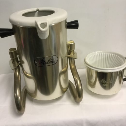 Retro kaffemaskine i børstet stål med keramisk filter indsats. Højde 34 cm og 17 i diameter