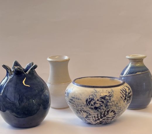 Blå flæsevase H:8 cm – Bredde midt: 6 cm.