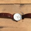 Uret har urkasse i stål (rosaguld), hvid urskive og brun rem i ægte læder. Vandtæthed 3ATM.