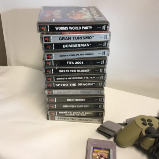 Playstation 1 med 2 controllere og 14 spil- ikke testet.
