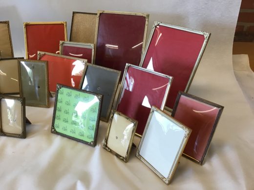rammer med buet glas og fod i forskellige størrelser. 27 stk.