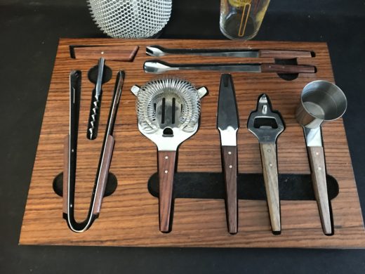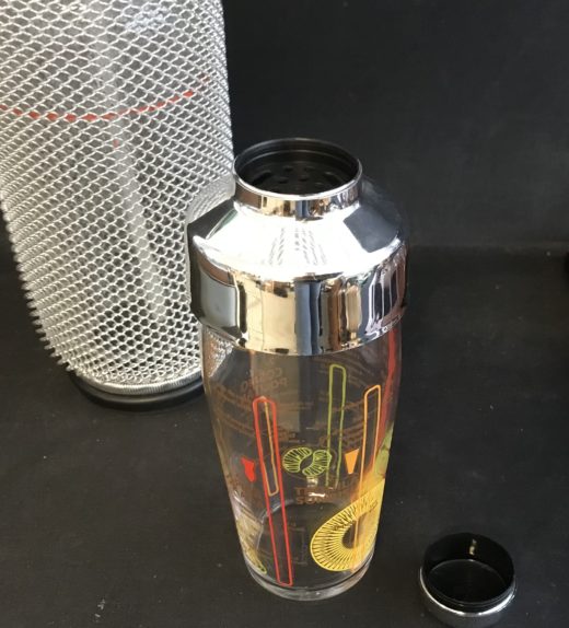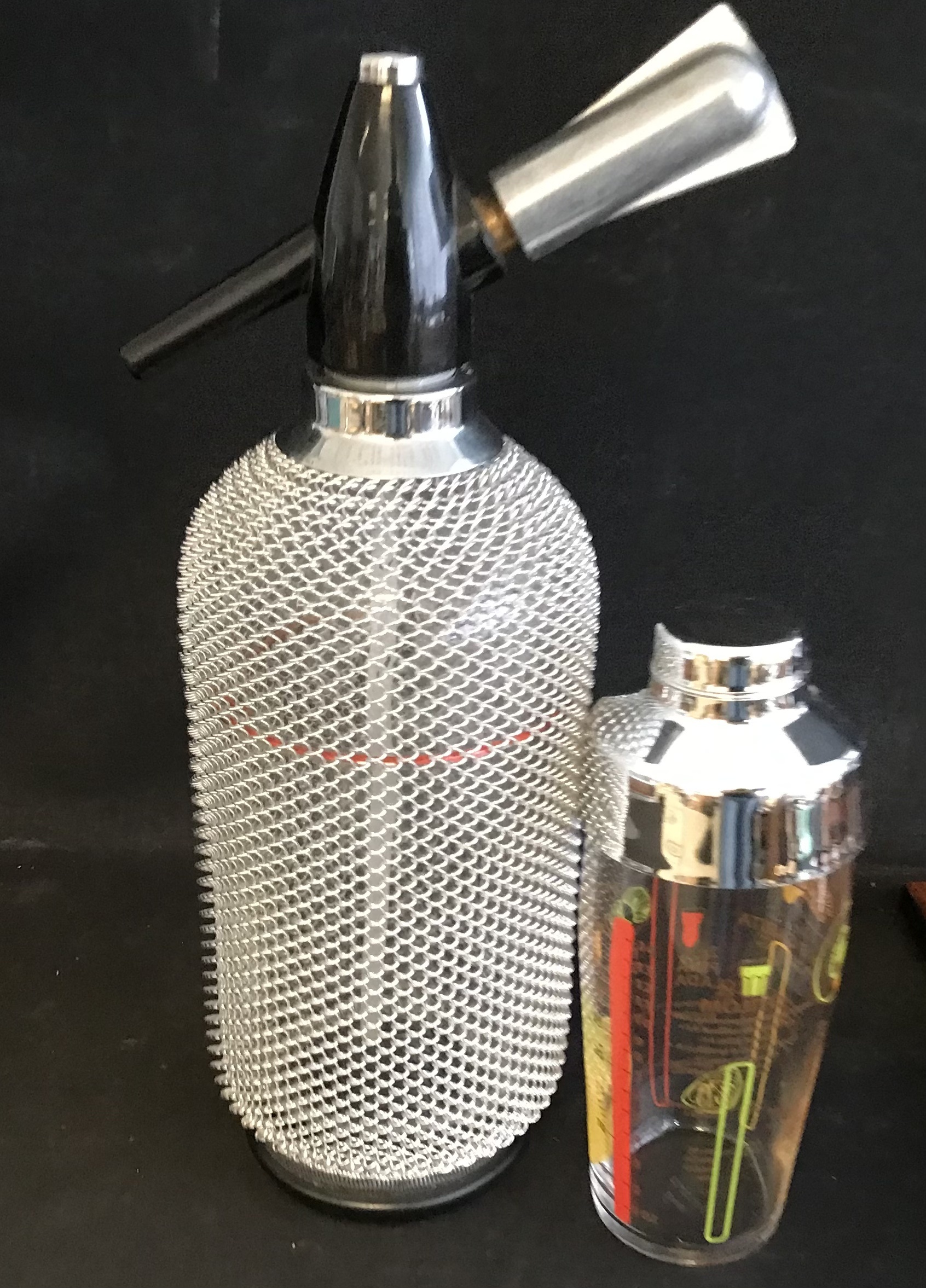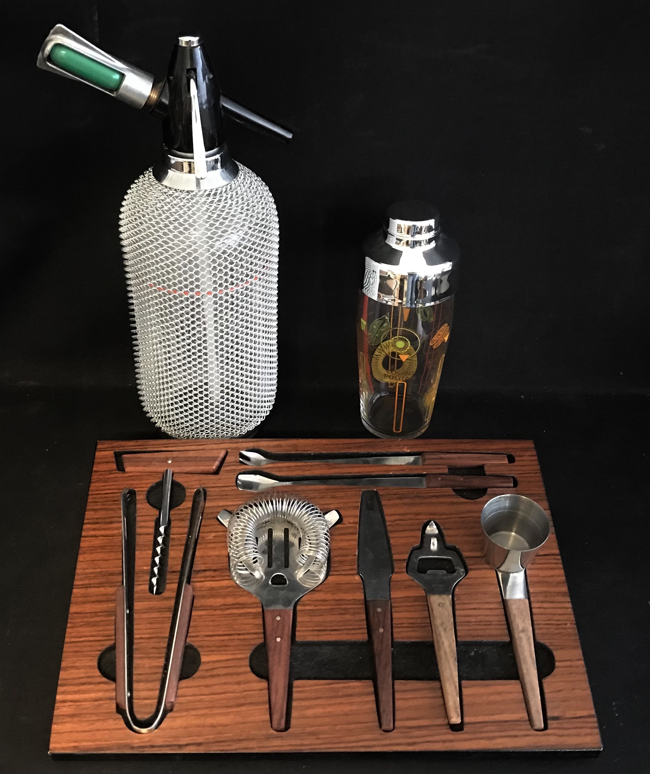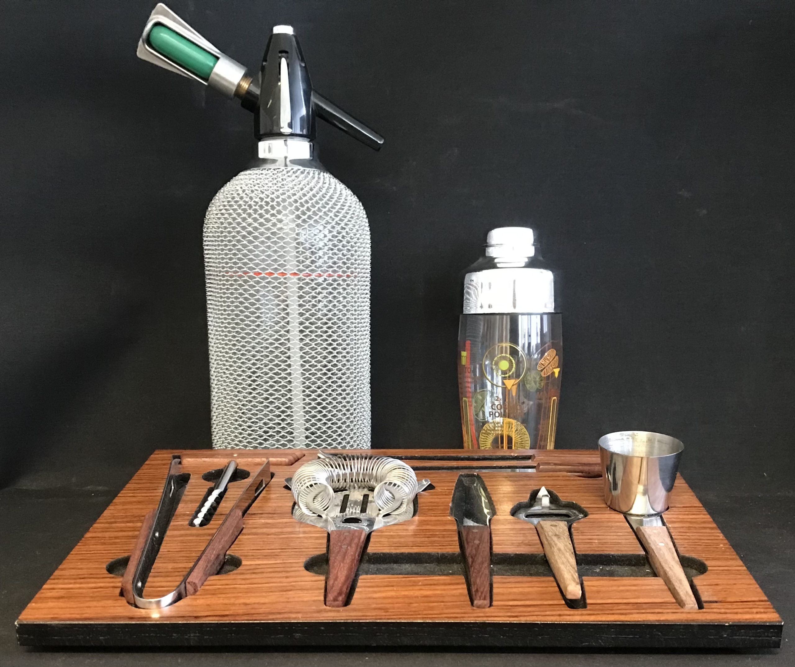Sæt til drinks med siffonflaske(tung), cocktailshaker i glas samt diverse drinksredskaber.