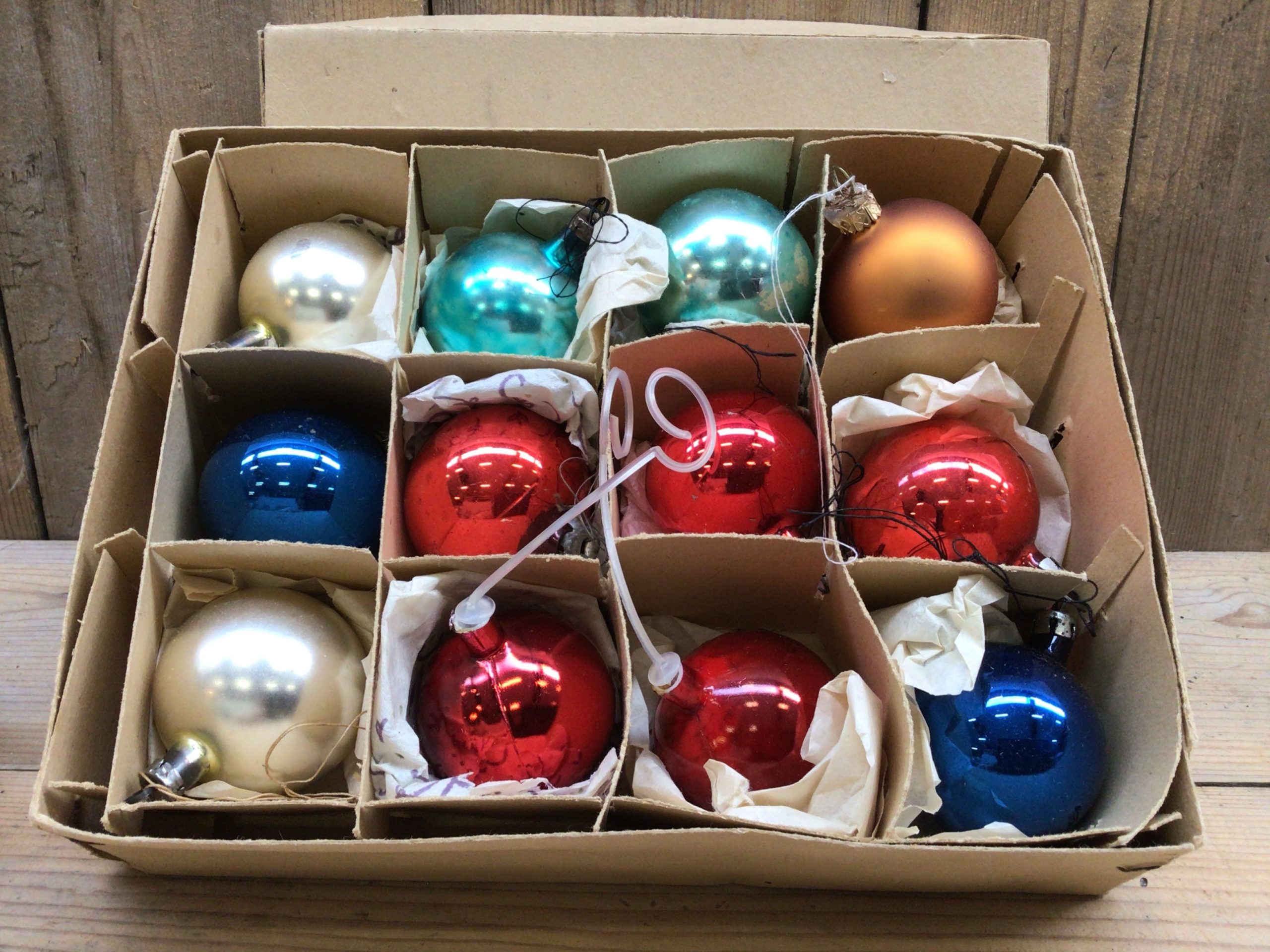 2 æsker Smukke gamle julekugler – i alt er der 23 stk.