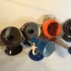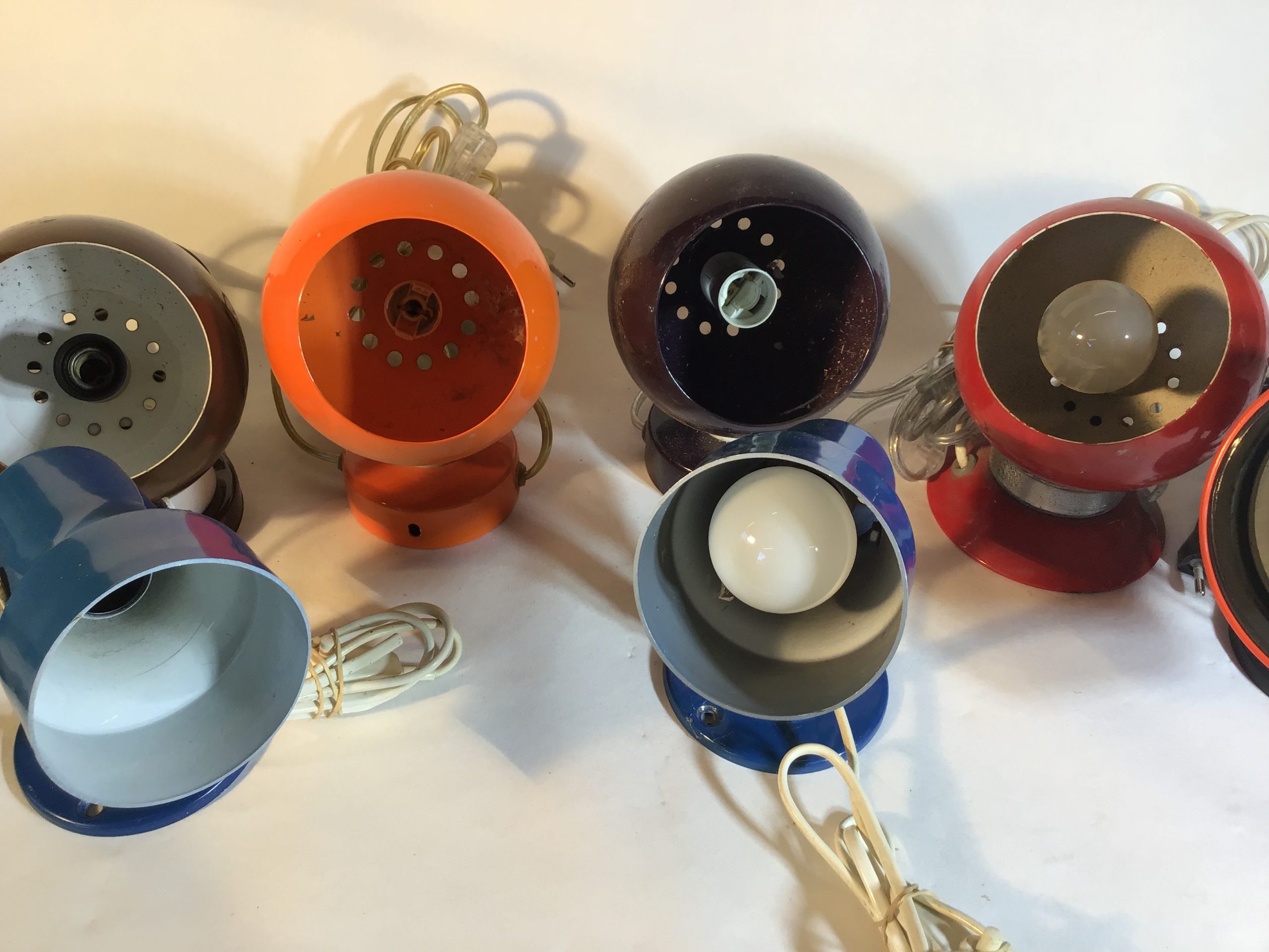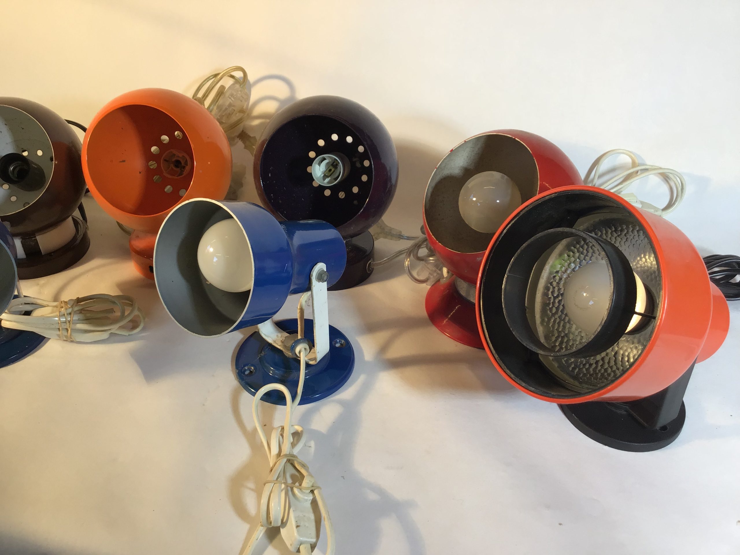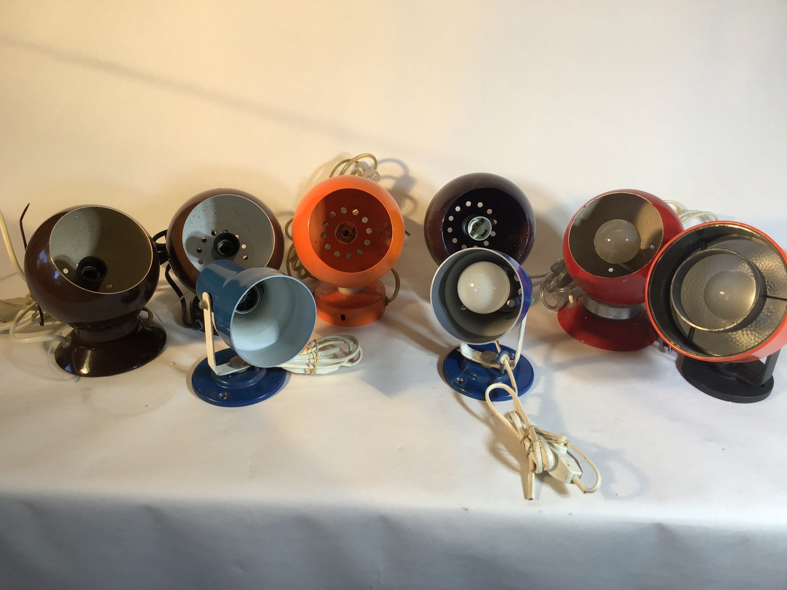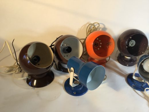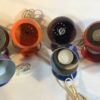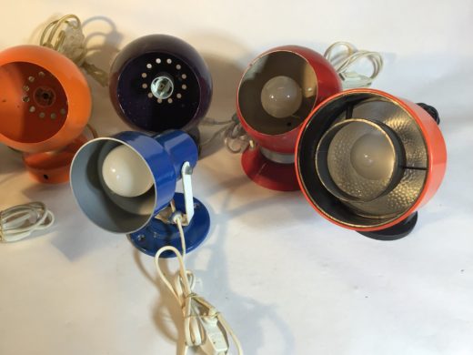 Bl.a. 5 magnetlamper:2 brum’ne, 1 orange, 1 lilla og 1 rød.