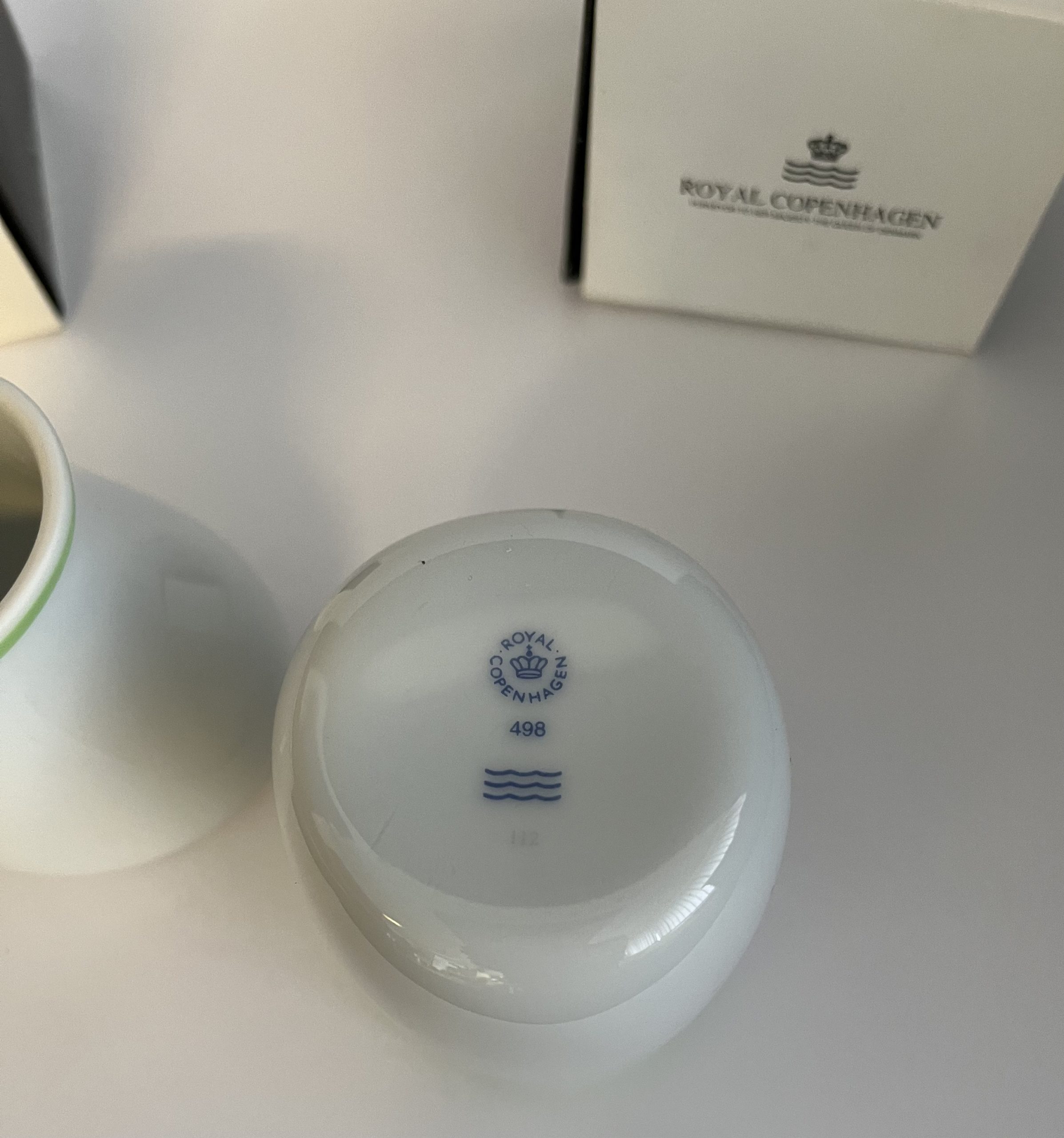 2 stk. kop/børnekop/flødekande?  med grøn kant.