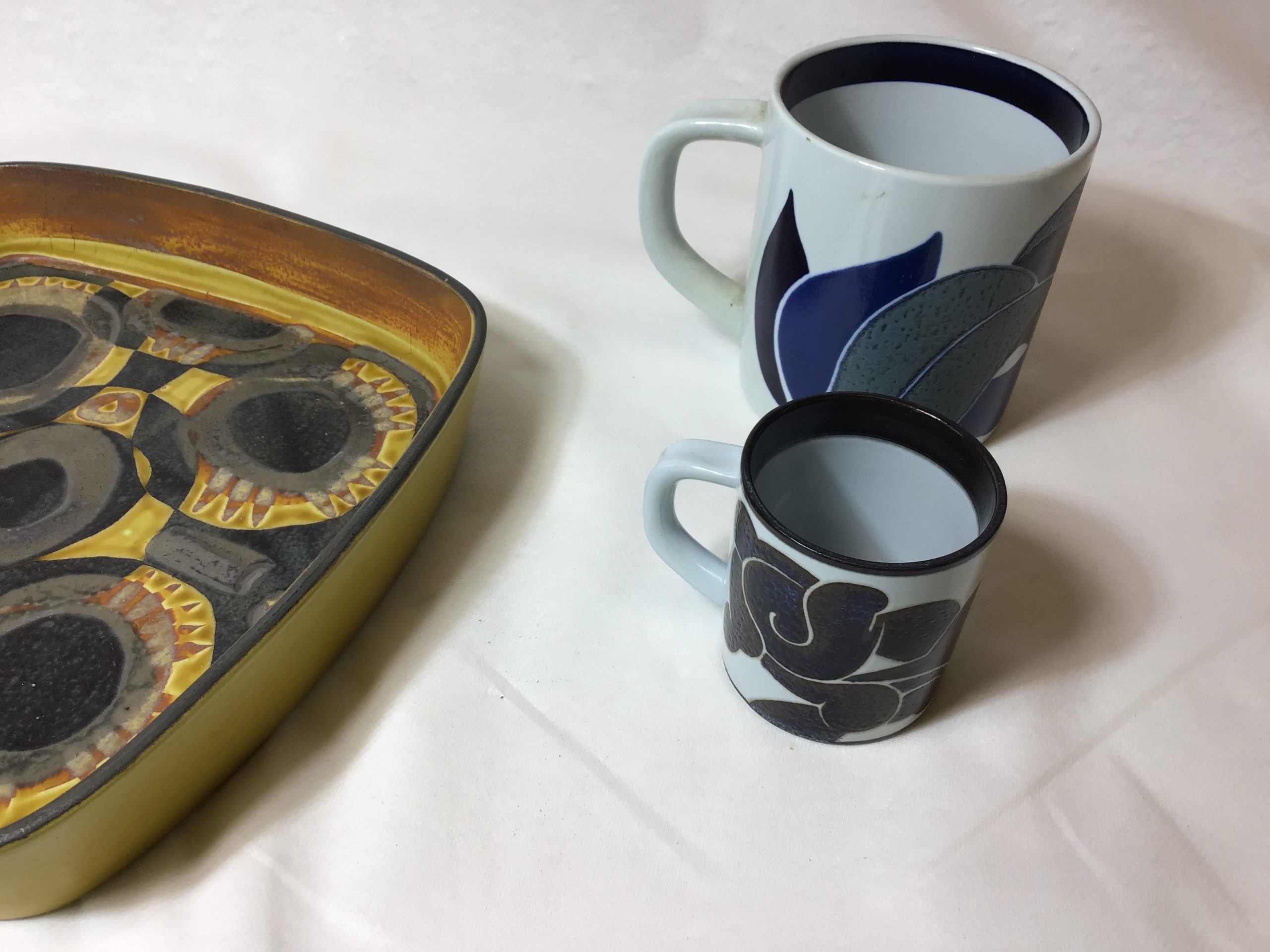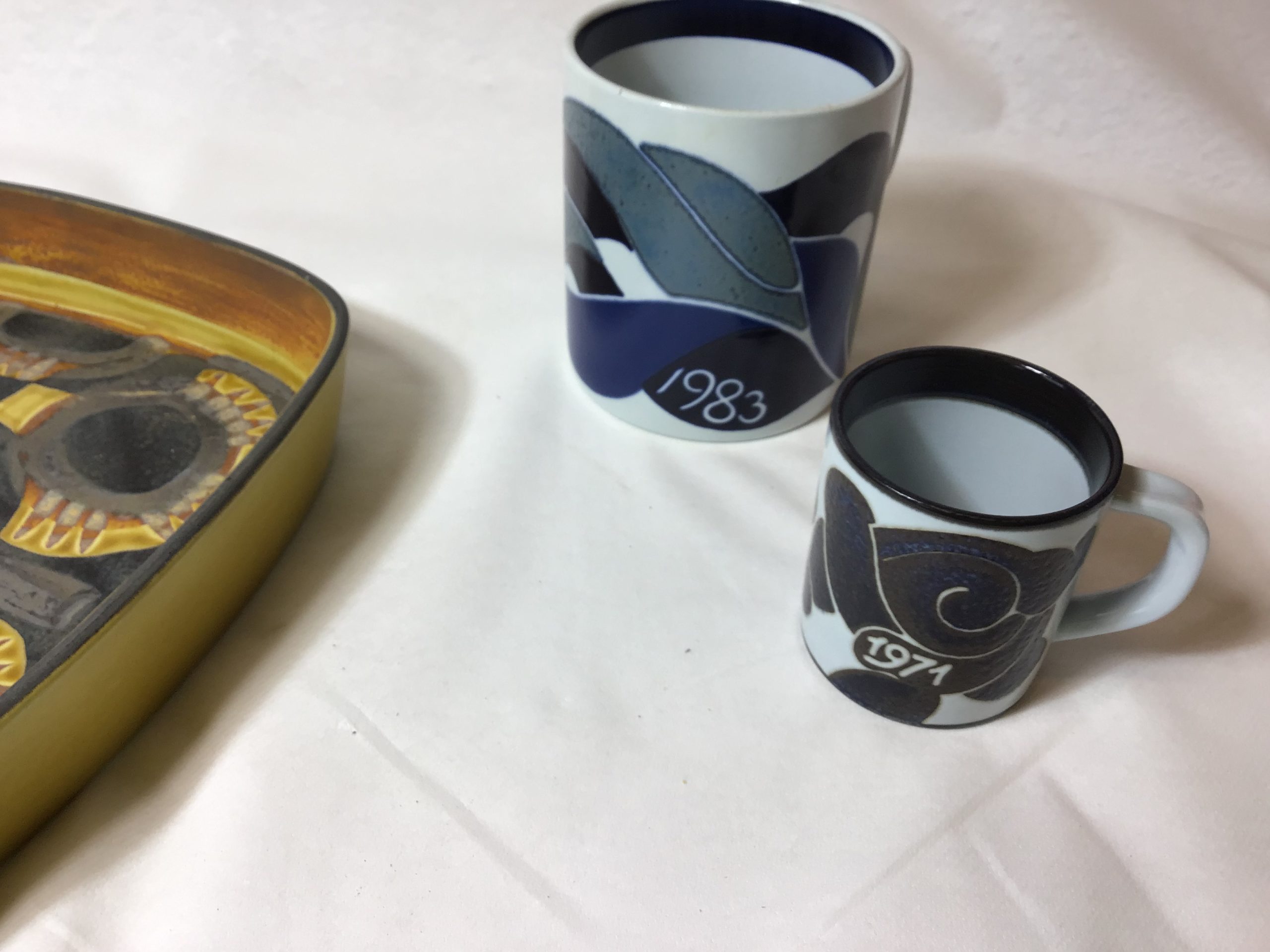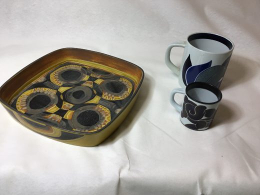 Firkantet fad, stort årskrus fra 1983 samt lille årskrus fra 1971