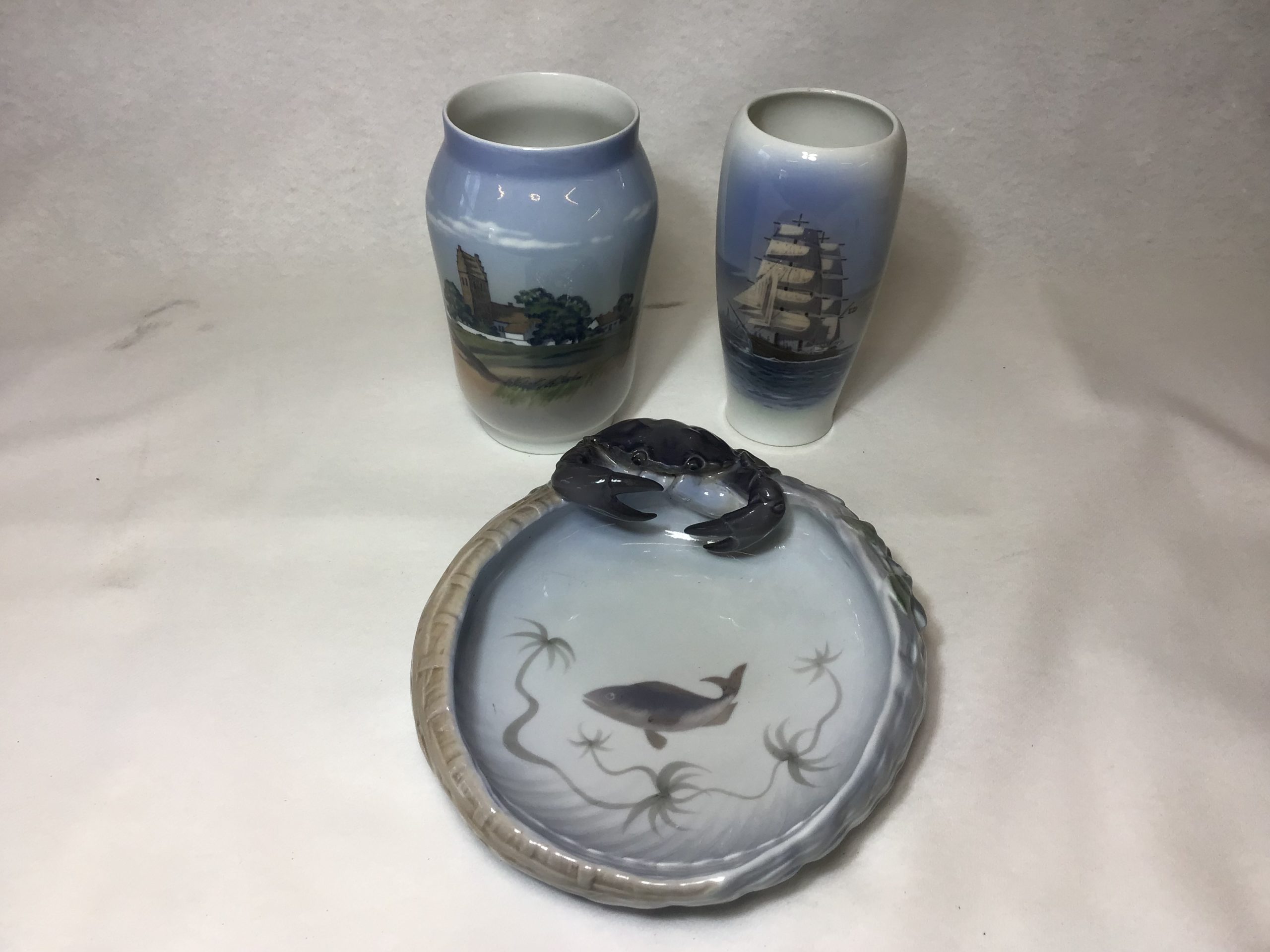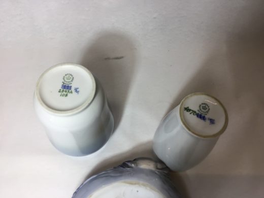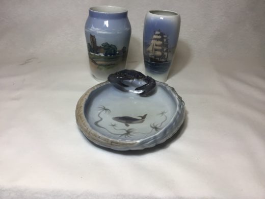 Vaserne måler ca. 18 cm i højde, fadet ca. 20 cm i diameter.