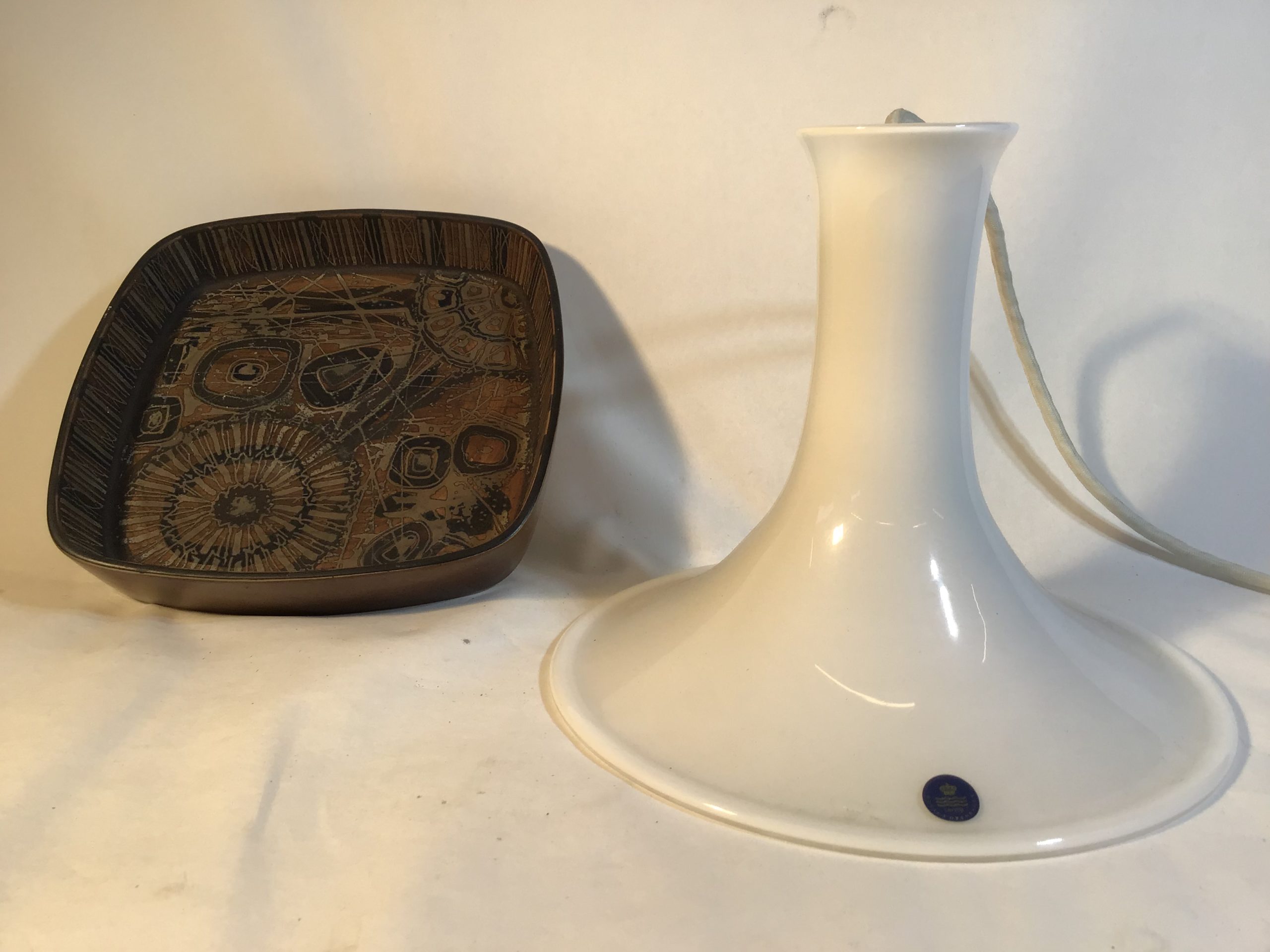 Fad: 4×22 cm., lampe H: 20 cm., Ø:24 cm.