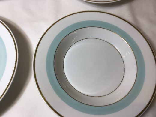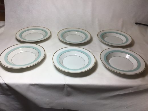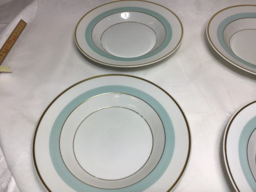 6 stk dybe tallerkner fra Royal Copenhagen. guldstriberne er slidt af enkelte steder.