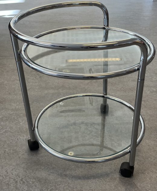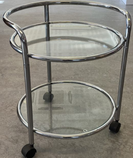 Rullebord/barbord  i krom/glas. H: 50 cm- Ø: 53 cm