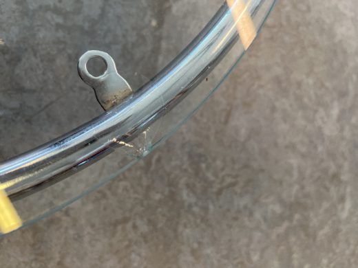 Fremstår med brugsspor på stel samt et par små afslag på begge glasplader. Se billeder.