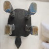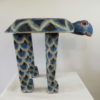 Skildpadde i bemalet træ – se fotos. Har en skade på sit ene bagben, men ser ud til at kunne behandles med lidt trælim. Fremtræder med brugsspor.