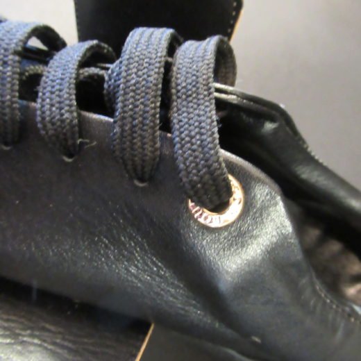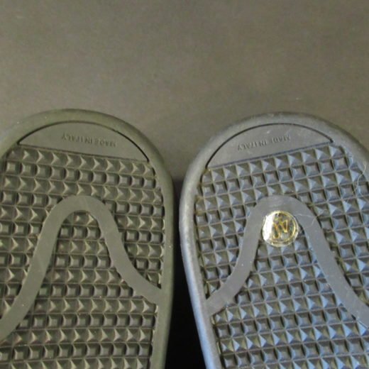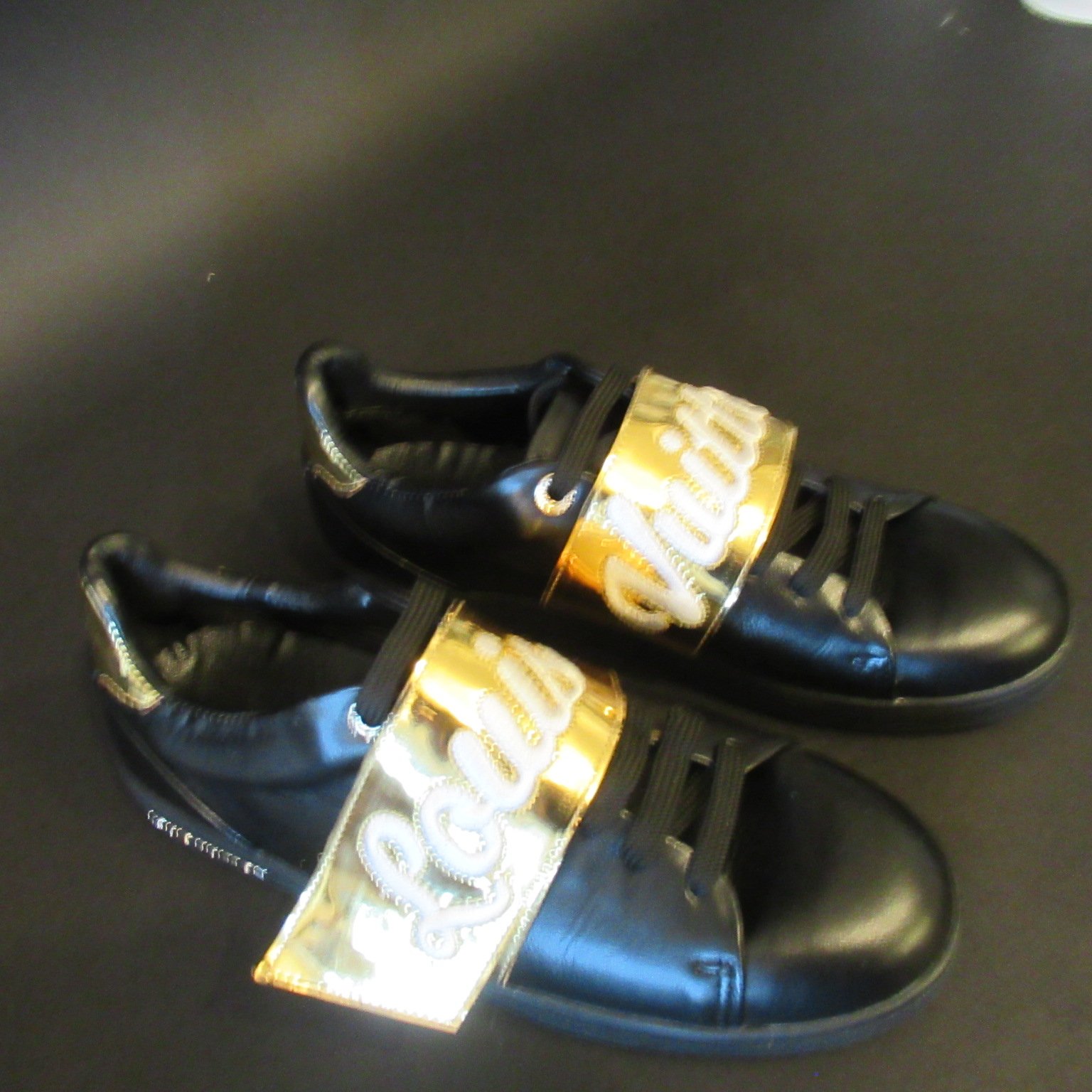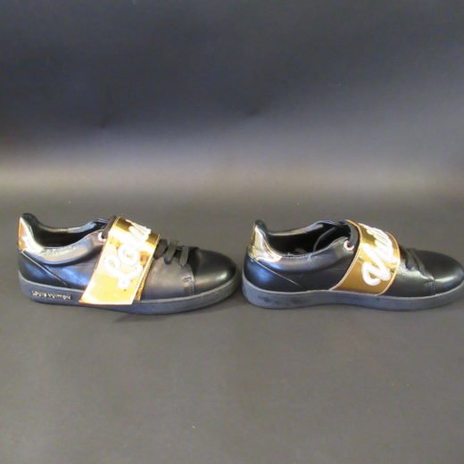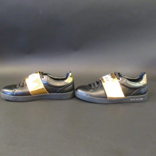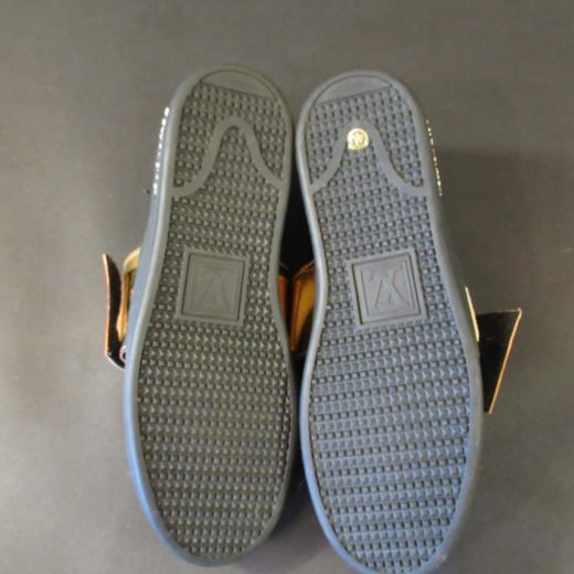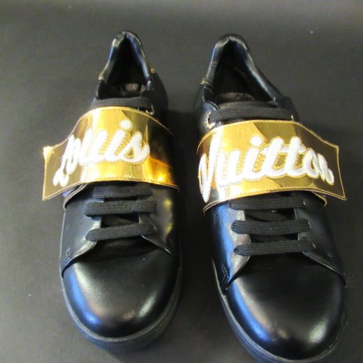 Velcrolukningen har påsyet “Louis” på højre sko og “Vuitton” på venstre sko.